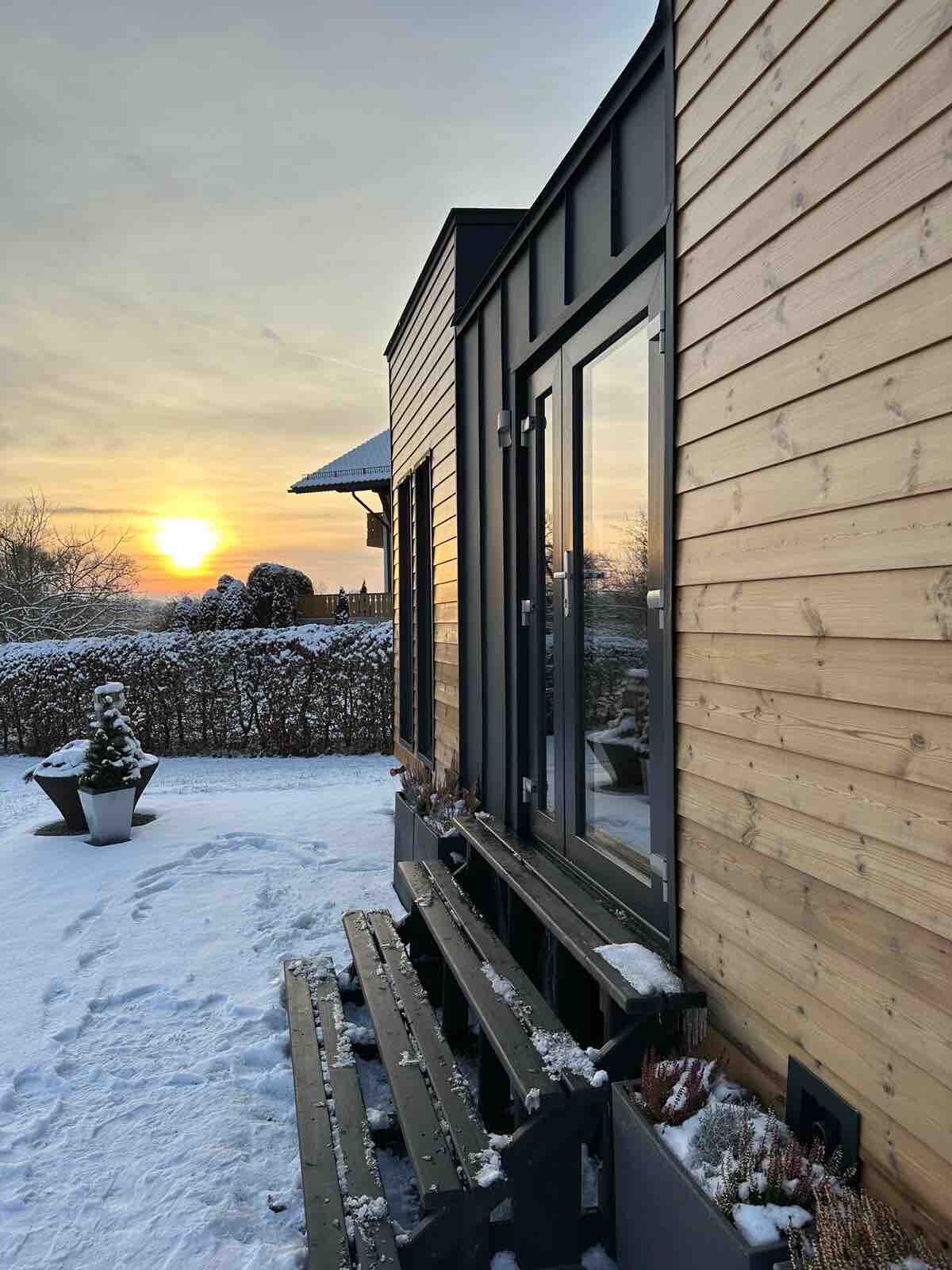 El chalet de nueva construcción en madera se completó con gran atención al detalle en marzo de 2024. Fue construido en un estilo moderno y cumple con los más altos estándares energéticos. El camino desde la plaza de aparcamiento privada, a través de la casa, hasta el porche cubierto con un nuevo jacuzzi eléctrico se ha diseñado a nivel del suelo. En el interior se puede estar cómodo con la estufa de leña y la sauna privada (gratuita). La ruta ciclista del parque nacional y las hermosas rutas de senderismo se encuentran a poca distancia a pie.
