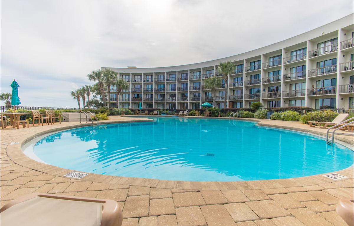 Tan pronto como entres en nuestro apartamento frente a la playa en el tercer piso, dejarás atrás todas tus preocupaciones y te relajarás mientras disfrutas de una vista directa del golfo de México. Puedes ir caminando a la playa directamente desde el edificio, sin necesidad de cruzar ninguna carretera. Muchas actualizaciones realizadas en marzo de 2021: sofá cama tamaño queen, nevera de acero inoxidable, cocina, lavavajillas y microondas, muebles nuevos, pintura nueva, suelos nuevos y televisores nuevos. Tenemos Netflix y wifi de alta velocidad.