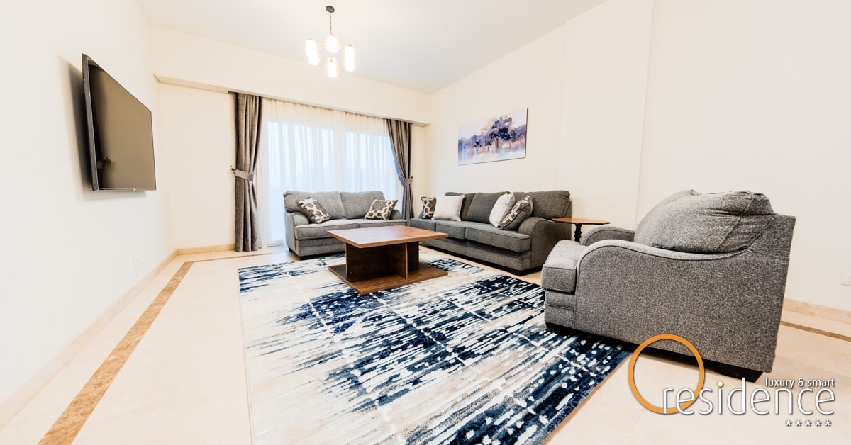 Apartamento moderno amueblado con 3 dormitorios, incluido un dormitorio principal con baño privado y vestidor. Cuenta con 2 baños, 2 balcones con vistas al lago, cocina totalmente equipada y televisor inteligente de 65 pulgadas. Todos los muebles son nuevos. Situado en N Stone Residence, con 7 piscinas, lagos, club deportivo, zona infantil, cafetería, supermercado, mezquita y senderos para caminar y montar en bicicleta. Cerca de centros comerciales y de todo lo que necesitas Ubicación Y servicios: El complejo está cerca de varios centros comerciales y de todo lo necesario para el día a día.