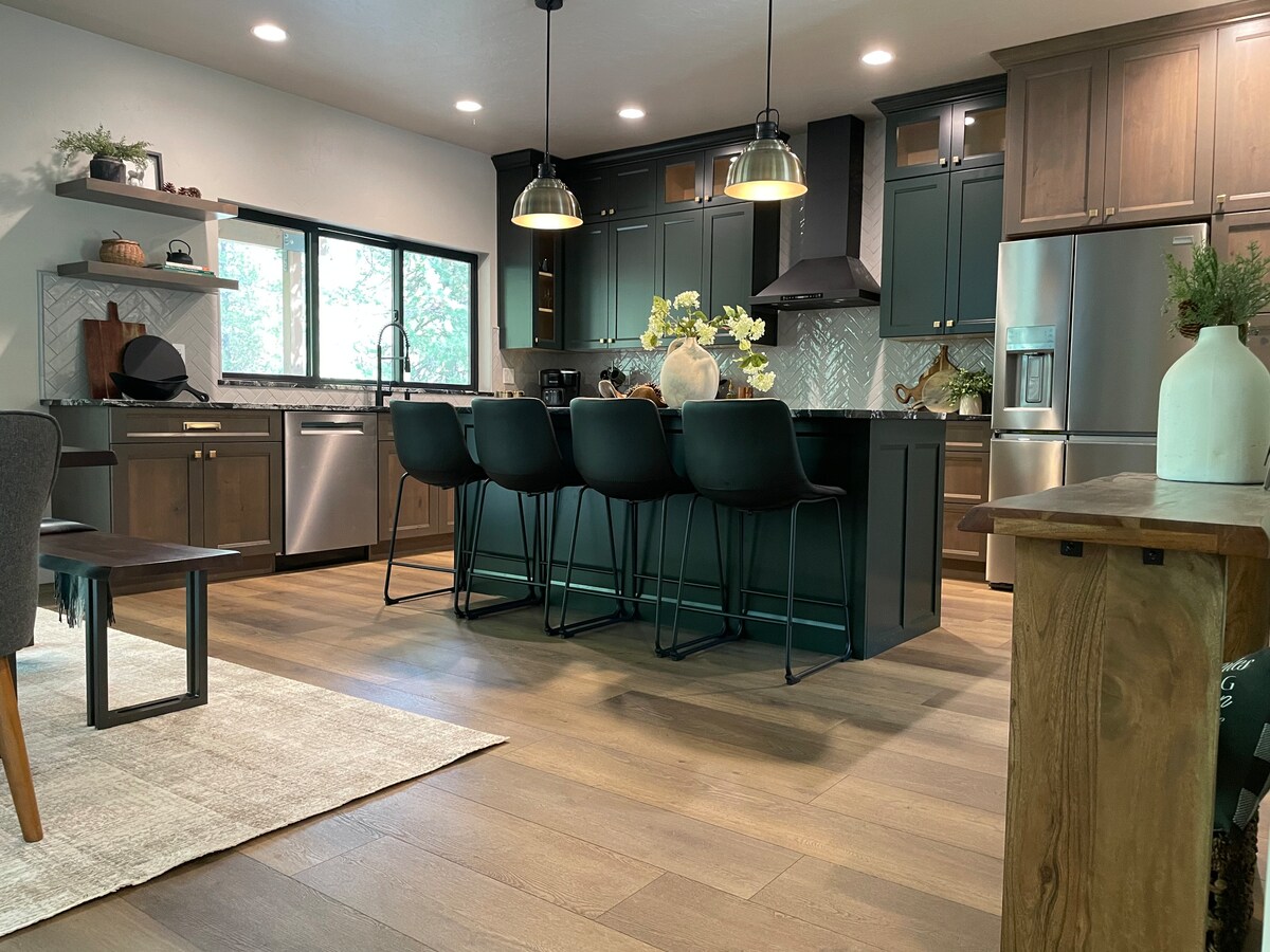 ¡Absolutamente impresionante por dentro y por fuera! ¡12 camas, 3 baños y una enorme habitación extra! Impresionante refugio y comodidades modernas para disfrutar de una estancia cómoda. Techos abovedados de 24 pies con ventanas igual de altas, enorme habitación extra con las literas más bonitas y electrodomésticos de cocina nuevos. Las encimeras de granito con techos de lengüeta y ranura hacen que esta casa sea realmente pop. Envuelve la terraza delantera para disfrutar de la paz y la tranquilidad del aire libre. ¡Muchos animales forestales vistos alrededor de la propiedad casi a diario!