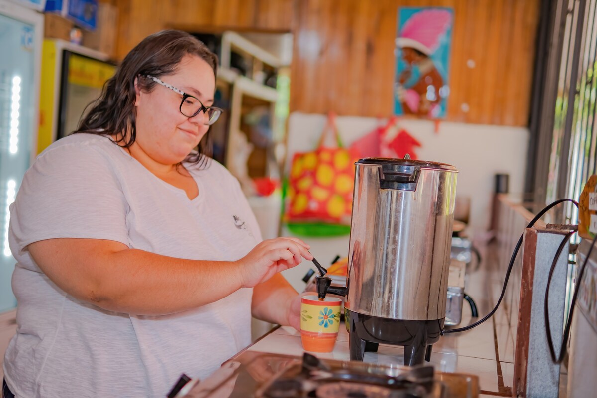 Hermosa habitación para 2 personas en el corazón de Santa Teresa. La habitación tiene su propio baño privado con agua caliente, televisión por cable y aire acondicionado. Acceso completo a todas las instalaciones del albergue, cocina compartida totalmente equipada, piscina gratuita, gran piscina y espacio para disfrutar y relajarse. El desayuno incluía una ubicación perfecta, a metros del supermercado, tiendas y restaurantes, a 200 metros de los bancos y el área de negocios y a solo 100 metros de la playa.