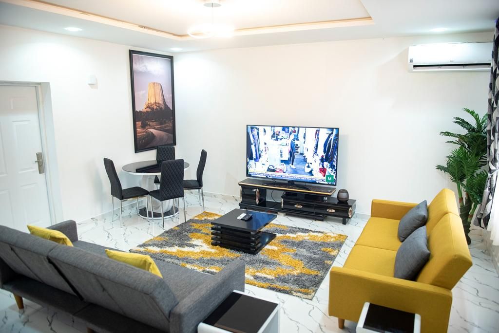 Este exquisito y lujoso apartamento con servicios está cuidadosamente escondido de la ciudad, pero accesible al centro de la ciudad. Tiene una ubicación céntrica con todas las comodidades exclusivas y el sistema de suministro de energía, como un inversor instalado y un generador que nunca falla en la alimentación de la unidad de refrigeración 12 horas por día. ofrecemos servicios de lavandería por un cargo adicional, pero el planchado es gratis. está a diez minutos de lugares como el centro comercial Novare, donde encontrarás Génesis Cinema, Shoprite, spa, barbería,restaurante,etc.