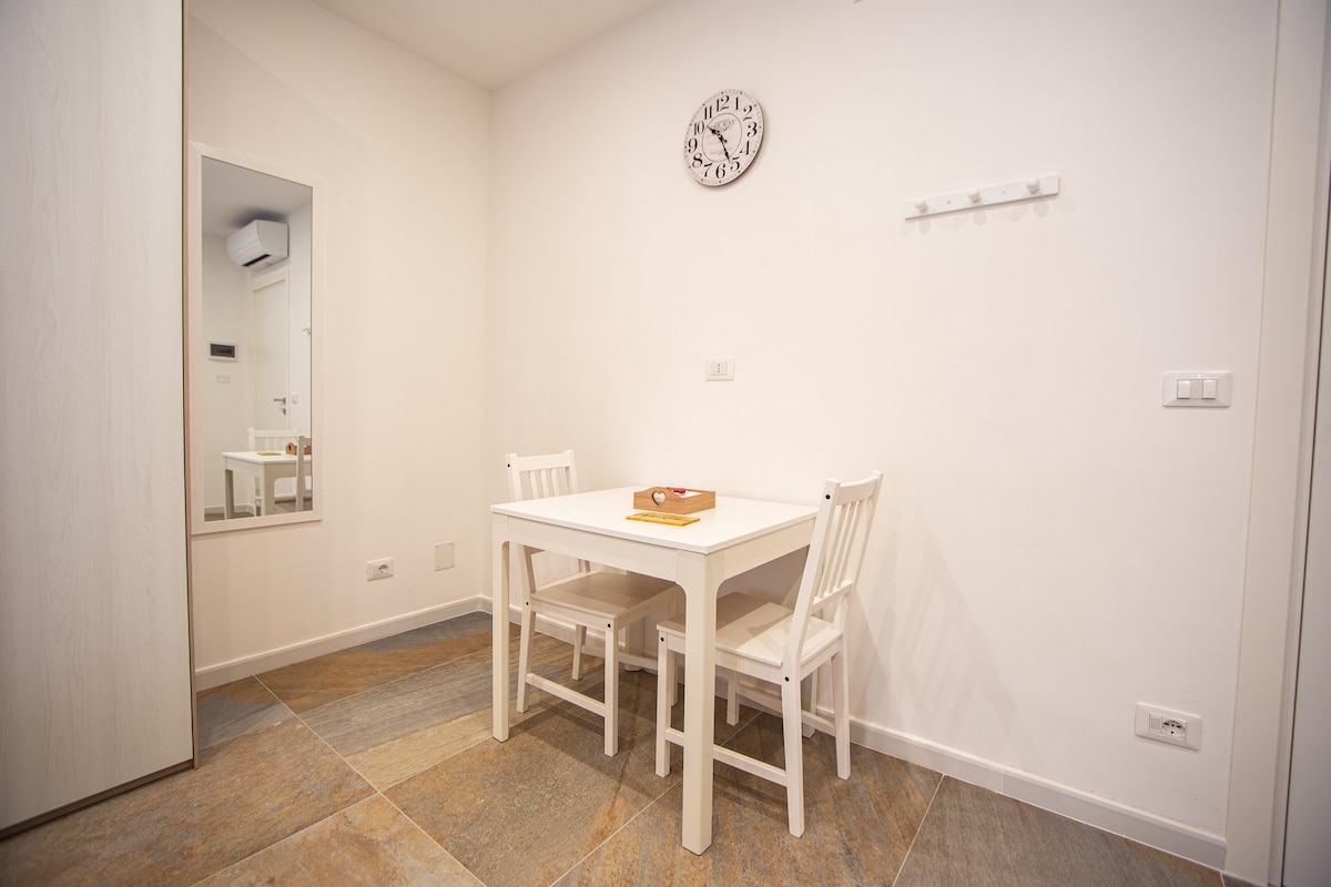 Todo lo necesario para una estancia en pareja perfecta al más puro estilo de Apulia. Vivirás en un barrio característico y fascinante en pleno centro, a pocos minutos de los puntos de interés y del transporte público y privado. Una solución ideal para un viaje corto o de varios días gracias a las opciones incluidas: cocina americana, baño en la habitación con lavadora y una habitación práctica y luminosa para descansar con total tranquilidad.