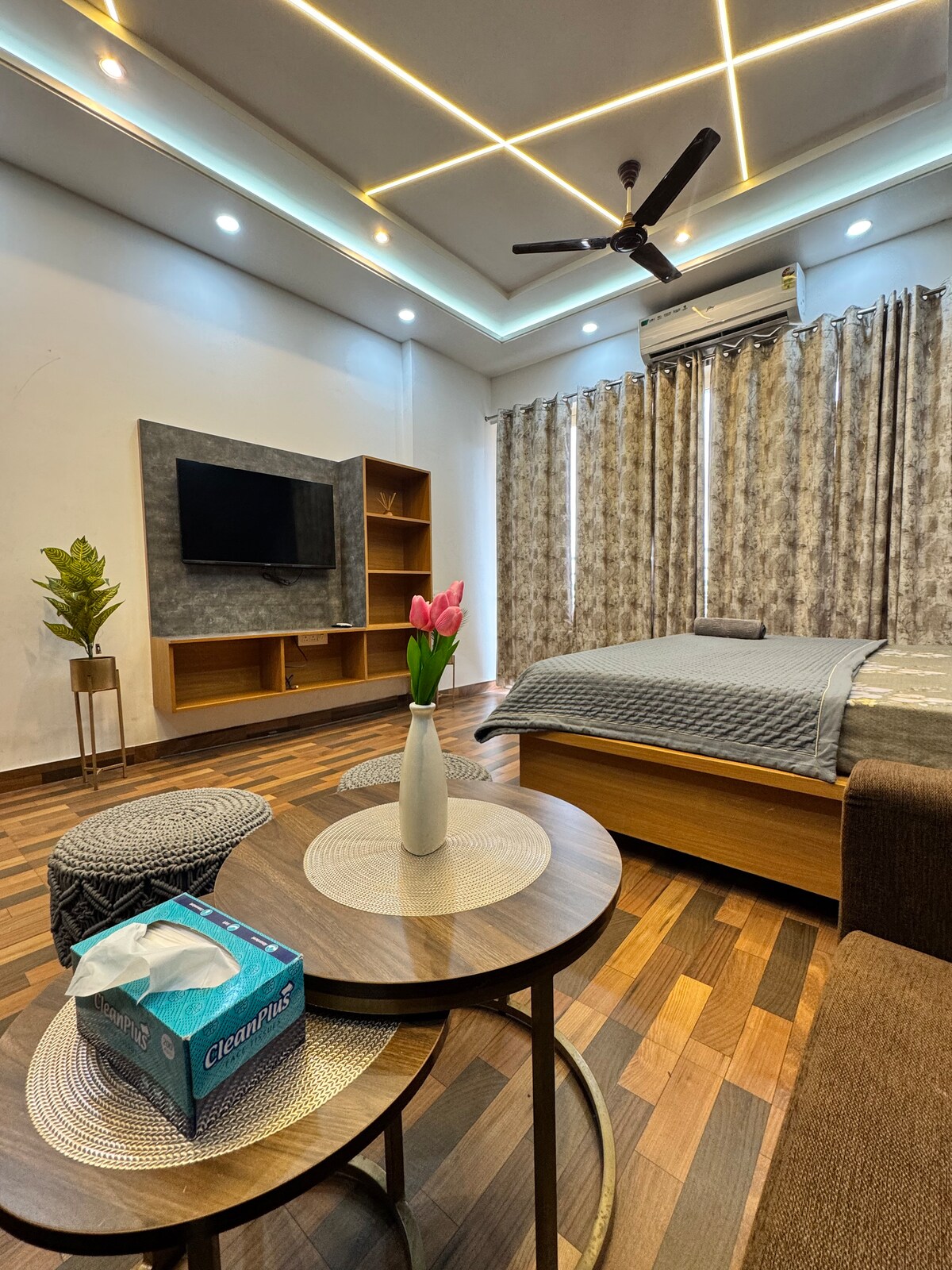 Brand New Studio Apartment! Our place is: - Family / Couple /Bachelor friendly - Fully Furnished with Brand New Equipments - Hygienic and properly sanitised. - 100m away from market with all essentials & restaurants. - Hosted by a Cool Host who is Adventurer, An Avid Traveler and Travel Brands Builder Also Includes: - Fully equipped and Functional Modular Kitchen - Water Purifier, Microwave, Induction, Kettle - High Speed Wifi - Free Parking - Power backup We welcome you to our charming Airbnb.