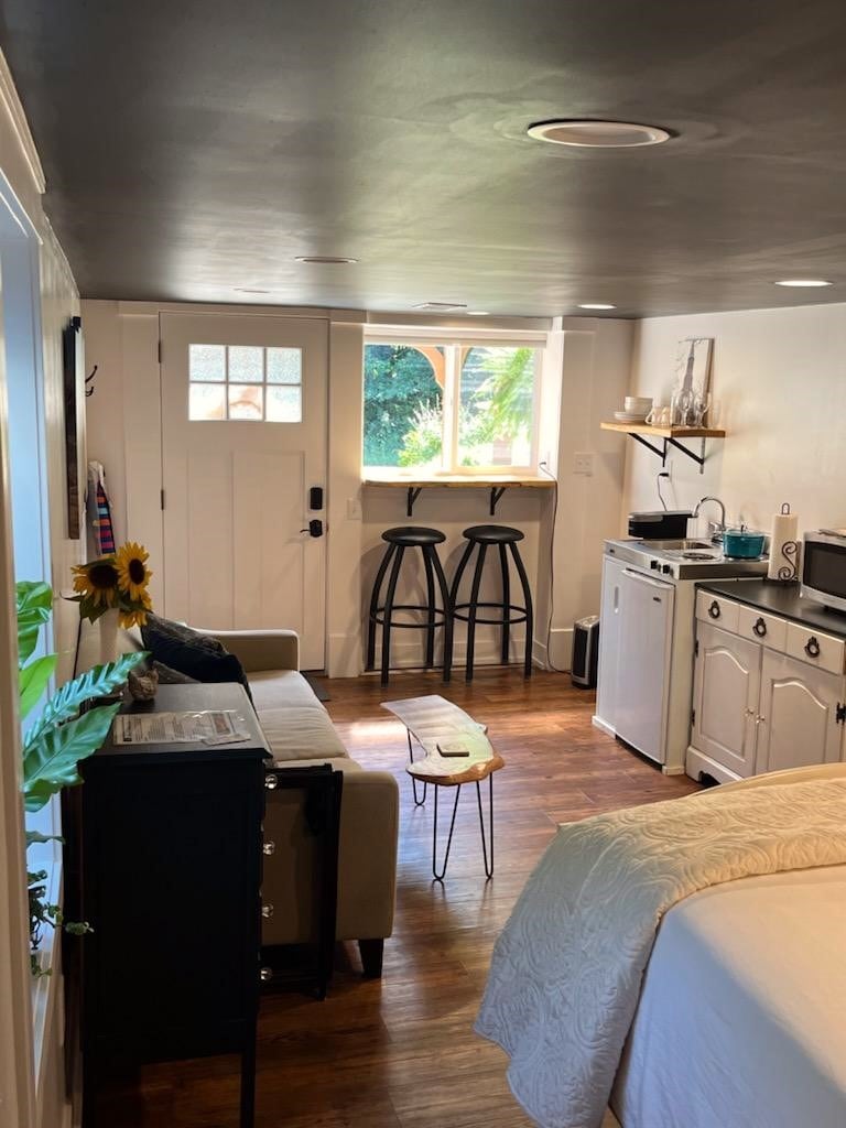 Espacio recién remodelado, muy acogedor. Una cama queen. La cocina contiene microondas, mini refrigerador, freidora de aire y parrilla al aire libre. Muy cerca de la I196. Honestamente, hay algo de ruido en la carretera, pero mientras estás dentro es más difícil de escuchar. Fácil acceso a Holland, Saugatuck y Grand Rapids. Cámaras de seguridad en el exterior de las instalaciones. No se permite fumar de ningún tipo ni consumir drogas en las instalaciones. Yo mismo limpio este airbb, así que si tienes algún problema con que no esté limpio, ponte en contacto conmigo inmediatamente.