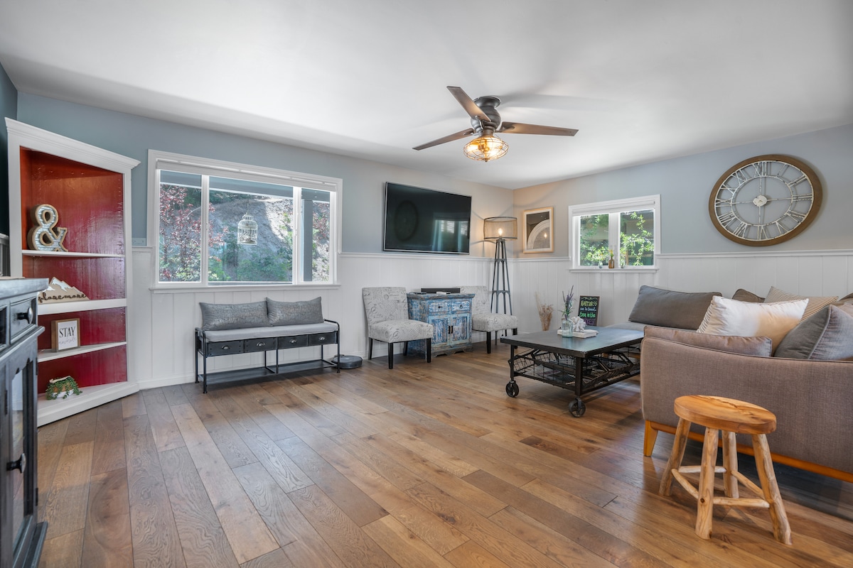Escondido entre los pinos, Sprocket Hollow es un alojamiento aislado en forma de A, cuidadosamente renovado con comodidades modernas, incluido aire acondicionado. Esta cabaña de tres niveles ofrece terrazas, vistas a las copas de los árboles y la serenidad de la montaña a pocos minutos de Lake Arrowhead Village. Comienza las mañanas con café en la terraza, aire fresco de montaña y arrendajos azules en los árboles. Pasa días caminando, explorando los lagos o sin hacer nada en absoluto. Por la noche, contempla las estrellas junto a la chimenea o disfruta de nuestros vinilos retro, juegos de arcade y chimenea de leña en la sala de abajo.