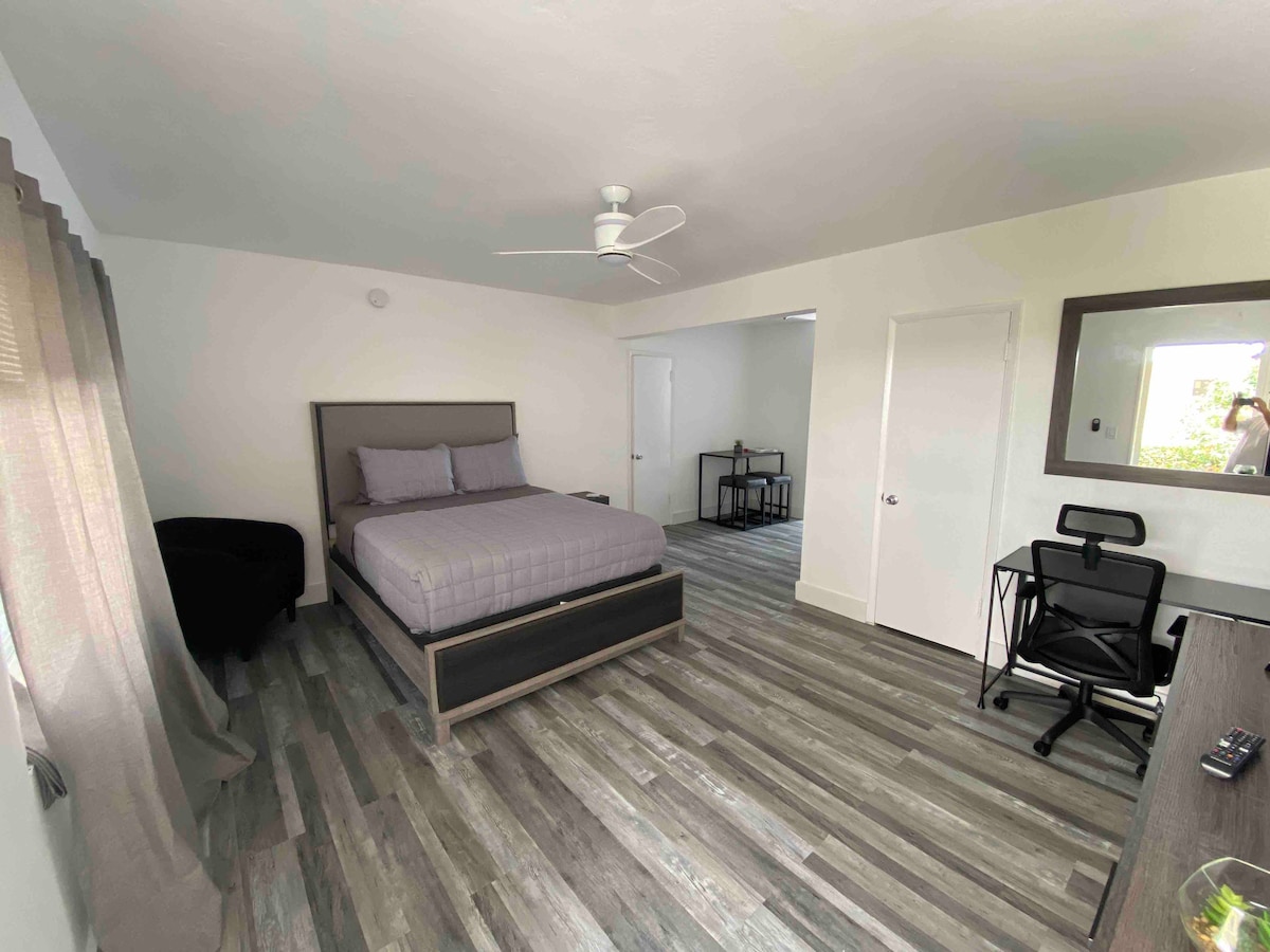 "Este increíble estudio" con estacionamiento en el lugar, AC, Internet y café de cortesía, está ubicado en MiMo District, una zona residencial, donde podrá disfrutar de la naturaleza del barrio y al mismo tiempo tener fácil acceso a las actividades de Miami. A tan solo 15 minutos del centro de Miami y Wynwood, y 10 minutos del Design District y Miami Beach! (cuidado con el tráfico de Miami, por supuesto) Uber y Lyft 24/7 en el area.