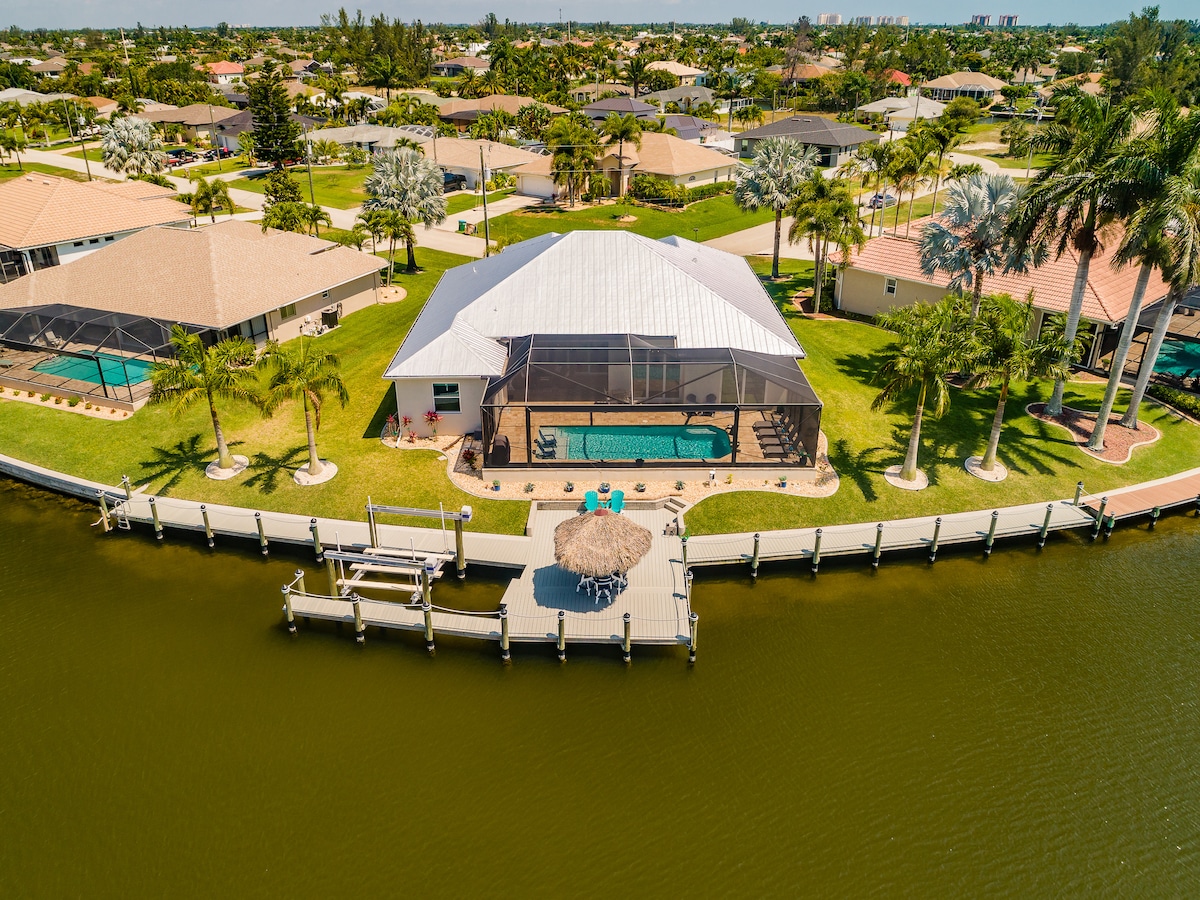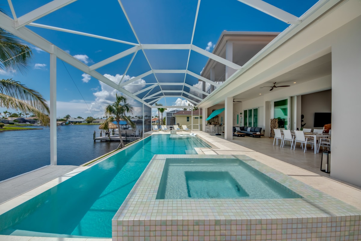 ¿Te gustaría nadar, relajarte al aire libre, pescar y disfrutar de hermosas puestas de sol en un amplio canal de acceso al golfo? Si es así, ¡te enamorarás de esta impresionante casa de nueva construcción hecha a medida! La casa de 2750 pies cuadrados es luminosa y espaciosa, con dos dormitorios principales en suites y un ala familiar separada. ¡La cocina gourmet, el comedor y la gran sala se abren a través de grandes ventanales al lanai y la piscina con vistas al canal en el muy deseado suroeste de Cape! ¡Villa inspirada en la playa! ¡Gran paseo de capitanes y Tiki! ¡Echa un vistazo a nuestras evaluaciones!