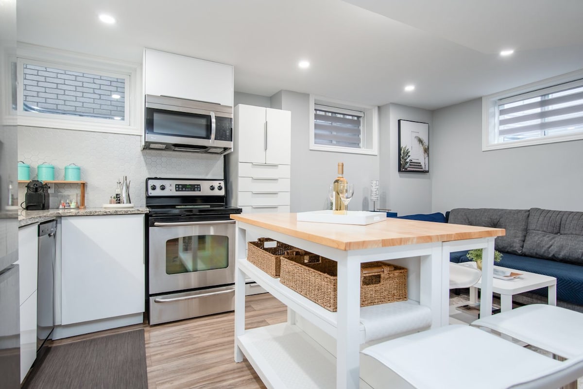 Estáis en vuestra casa. Este alojamiento de 2 dormitorios recién renovado es perfecto para profesionales, familias y trabajadores remotos. Ambos dormitorios cuentan con camas tamaño king, lo que garantiza una noche de sueño reparador. Disfruta de un ambiente relajante y acogedor, una cocina bien equipada e internet de 100 Mbps. Nuestro alojamiento incluye dos espacios de trabajo dedicados, lo que facilita trabajar desde casa durante tu estancia. Con una ubicación céntrica a pocos pasos del centro de la ciudad, es el hogar ideal lejos de casa para tu estancia en Kitchener.