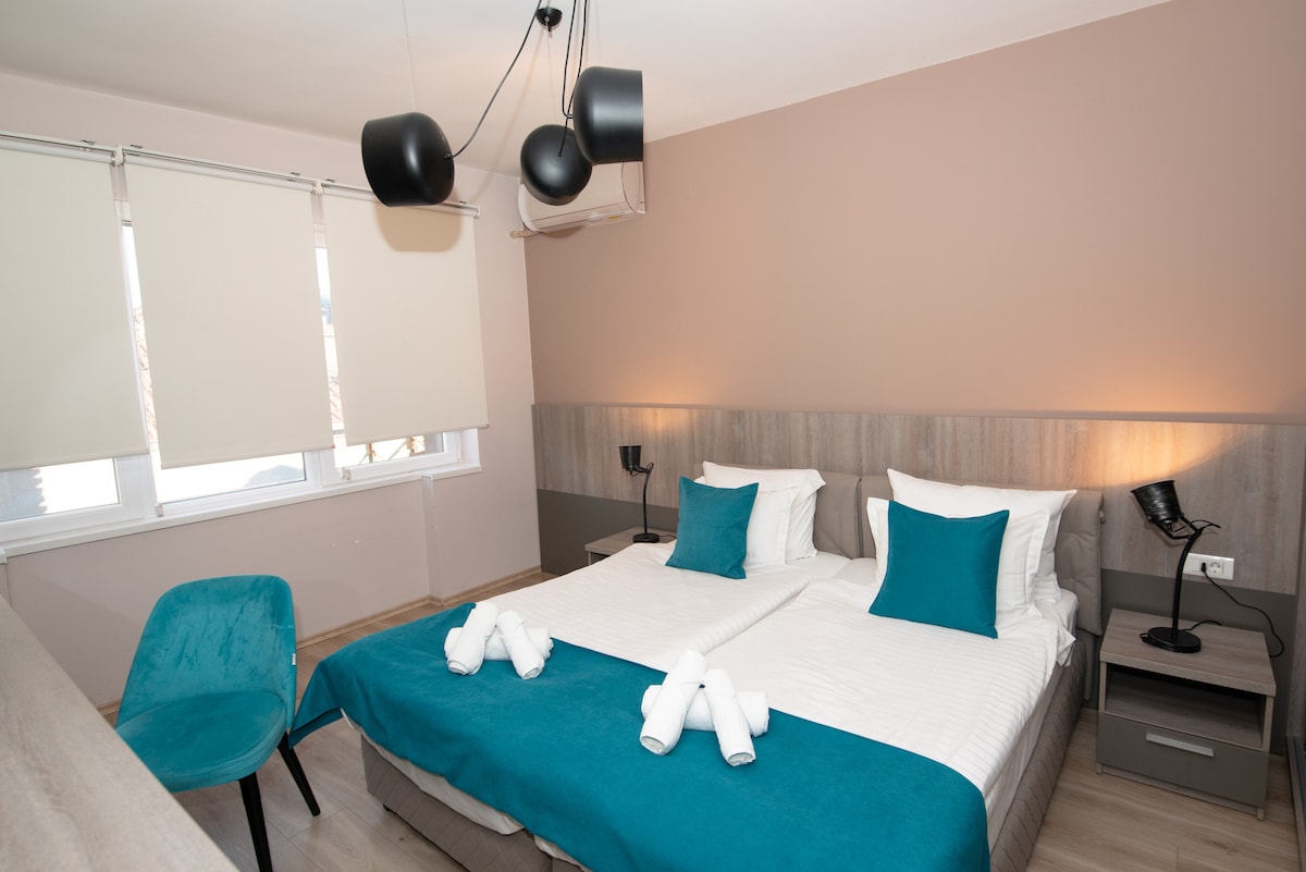 Located in the centre of Bitola, just a few steps from the Sirok Sokak street, but still in quite surroundings. Everything is just 2min. away..all the shoops , caffe bars, restaurants, .... The apartments are equipped with kitchenettes, AC, smart TV, large bathrooms and Wifi. King size beds and private balcony where you can enjoy your morning coffee. New and stylish our apartments offers everything for short and long-term stays
