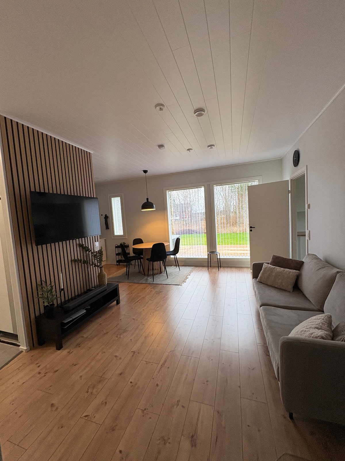 ¡Bienvenido a la espaciosa casa final de una casa adosada que ofrece todas las comodidades de una escapada relajante! El apartamento tiene una piscina de verano, dos baños y una sauna de madera, así como un gran patio y terraza. La cocina está bien equipada. El apartamento tiene una habitación con cama doble (cama extensible) y dos habitaciones con camas individuales. Además, hay dos colchones disponibles. Desde el apartamento hasta el centro de Oulu, a unos 3 km.