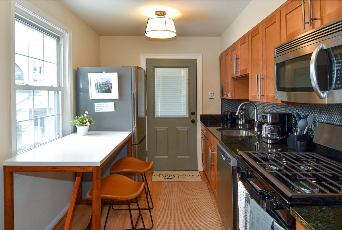 Casa histórica de 1,5 pisos en el corazón de Rockville, MD. Ubicado en la parte trasera de nuestra propiedad (separado de nuestra residencia principal): estacionamiento para huéspedes, entrada privada y patio exterior cubierto con muebles disponibles bajo petición. Decoración moderna pero acogedora. Capacidad para 2 personas en una cama tamaño king, espacio para un huésped adicional en el futón de la sala de estar. A 0,7 millas a pie del metro de Rockville y del centro de la ciudad.