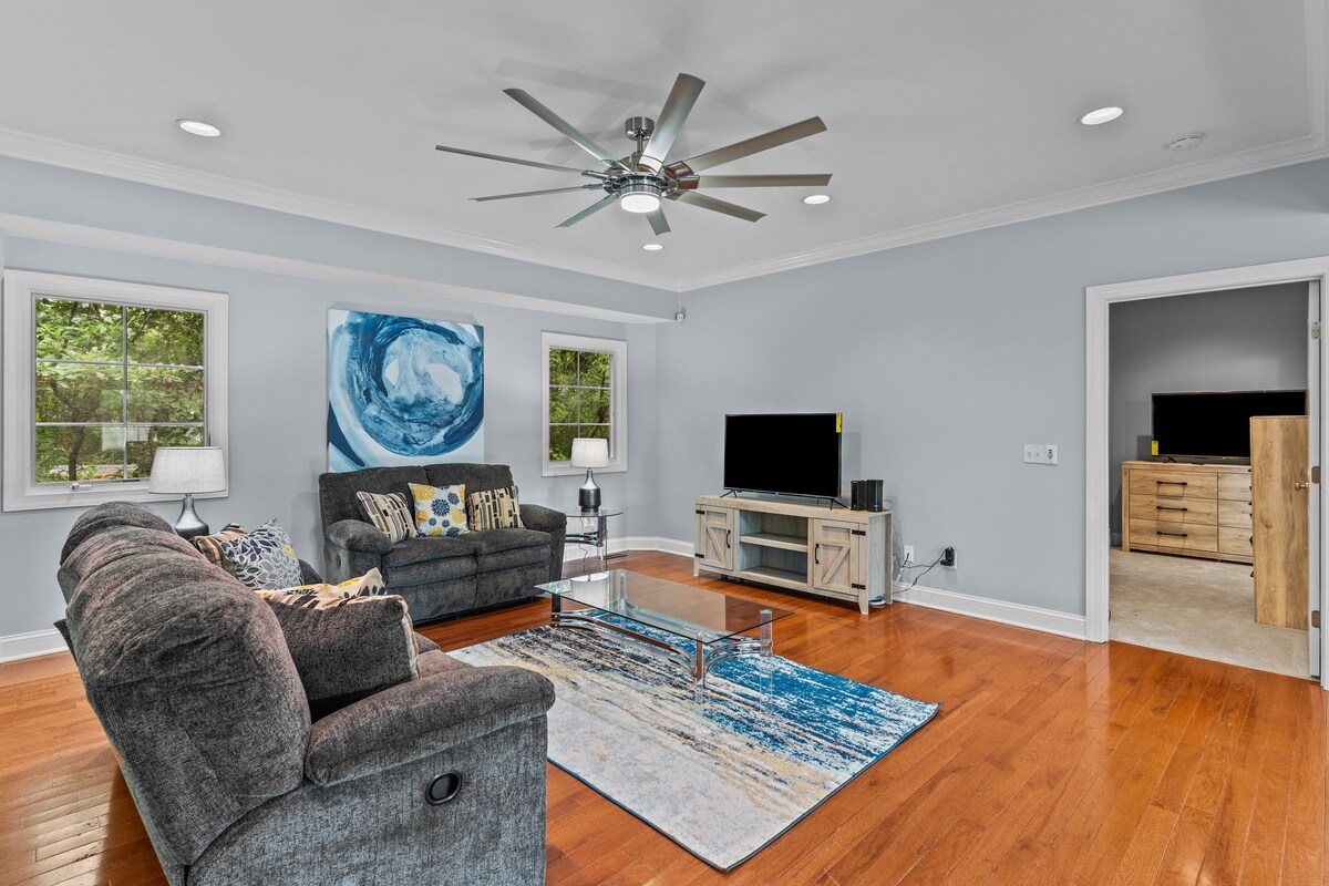 Escápate a este espacioso oasis de 5 dormitorios, perfectamente ubicado entre Wrightsville Beach y Historic Downtown Riverfront. Esta casa, que puede alojar cómodamente a grandes grupos de huéspedes, con una disposición ideal para dormir de 8 a 12 personas, combina estilo, comodidad, espacios divertidos y comodidad. Perfecto para vacaciones familiares, retiros grupales o reuniones con amigos, ofrece todo lo necesario para una experiencia inolvidable en Wilmington, Carolina del Norte.