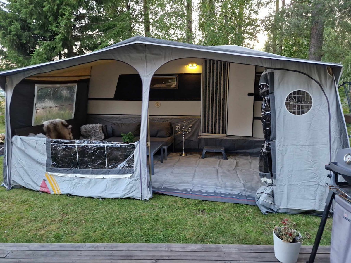 Para aquellos de vosotros que tenéis alma de trotamundos. Esta caravana de alta gama tiene chimenea y tecnología doméstica. La ubicación junto a la carretera del pueblo no molesta a los que vienen de las ciudades y, a cambio, tienes una vista al lago y una playa de arena natural, donde puedes seguir el día y el año del norte. Después de un día activo, relájate en la calidez de la chimenea, la sauna o la piscina climatizada. O en la playa, alrededor de la fogata, donde puedes susurrar tus pensamientos en la noche oscura y estrellada, cuando todo a tu alrededor está en silencio.