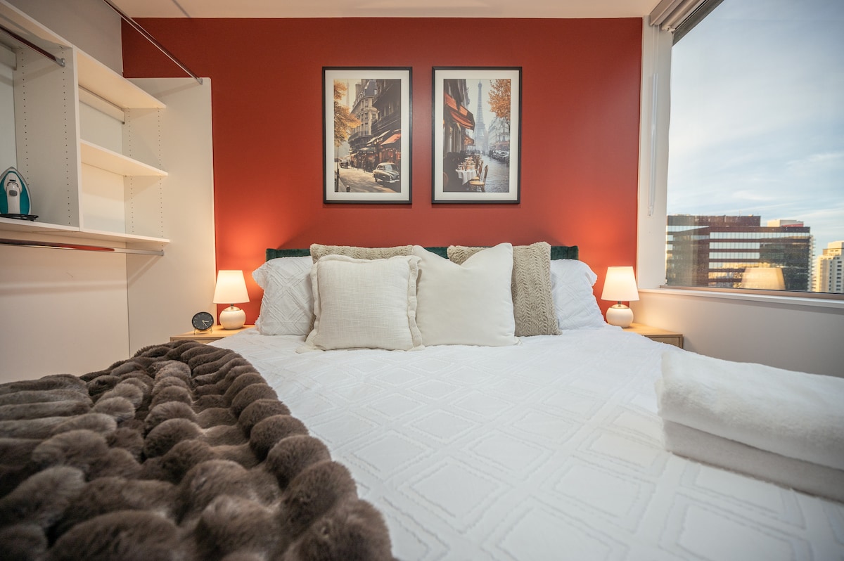 ¡Bienvenido a nuestro acogedor y asequible apartamento, perfecto para viajeros conscientes de su presupuesto! Si viajas por negocios o asistes a un evento en Rogers Place, este es un gran apartamento céntrico a pocos minutos a pie de Rogers Place, la Universidad Grant MacEwan y el centro comercial y restaurantes Edmonton CityCentre. APARCAMIENTO GRATUITO Roger Arena a 3 minutos a pie. Universidad Mac Ewan a 4 minutos a pie. Estación de tren a 3 minutos a pie. Para tu información: esta es una ubicación privilegiada en el centro de la ciudad, habrá algo de RUIDO y TRÁFICO DE PEATONES.