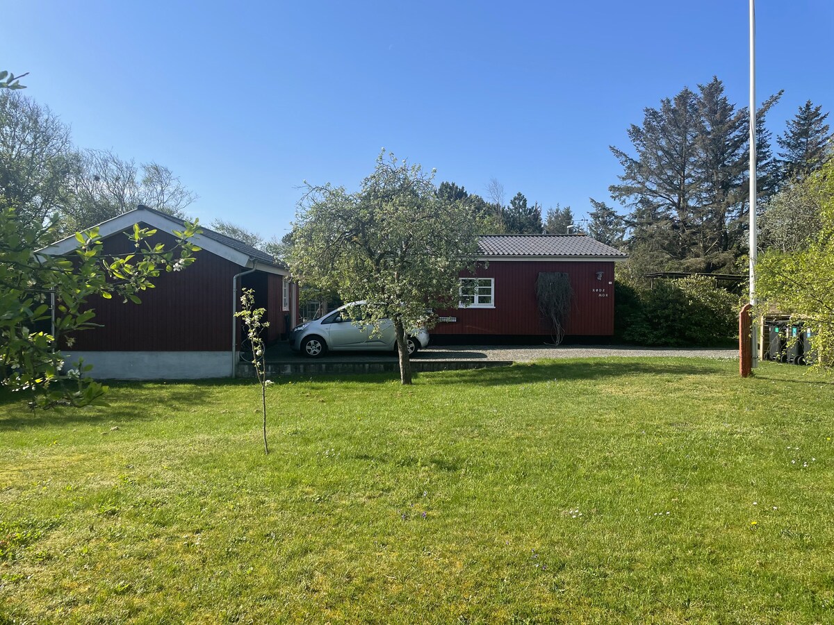 Bienvenido a nuestra encantadora casa en Bork Hytteby. La ropa de cama y las toallas, etc. están incluidas en el precio. La casa de verano tiene capacidad para 4 personas en 2 dormitorios. El patio está vallado. Está al lado del parque infantil y a solo 10 minutos a pie del puerto de Bork, donde hay tiendas. La zona ofrece Museo Vikingo Surf Pesca Legoland - 62 km Parque acuático Playa de Henne - 20 km El consumo de electricidad se cobra por separado (5,00 DKK/kWh) y se calcula a través del medidor de electricidad a la salida.