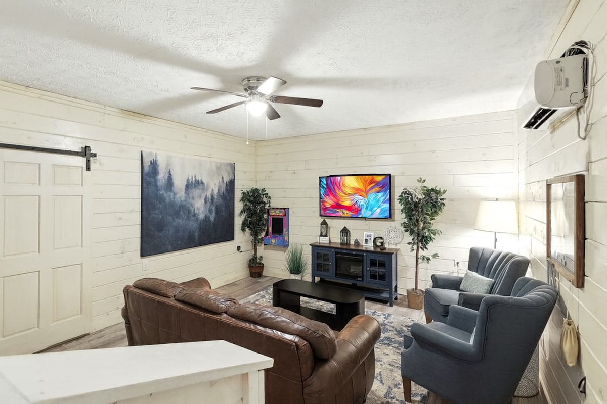 Perched on top a private 36-acre hilltop (the highest outside the Park!), Belltop is the perfect retreat. Enjoy our 2024 renovations! Brought to you by StayBham, creators of inspired retreats. Steam in the spacious steam room. Enjoy sunrise yoga in the loft. Soak in the hot tub overlooking the valley. Play vintage video games. Listen to a record or play the piano. Watch the sunset while you sit by the fire. Minutes from the Wears Valley entrance to the Smoky Mountains.