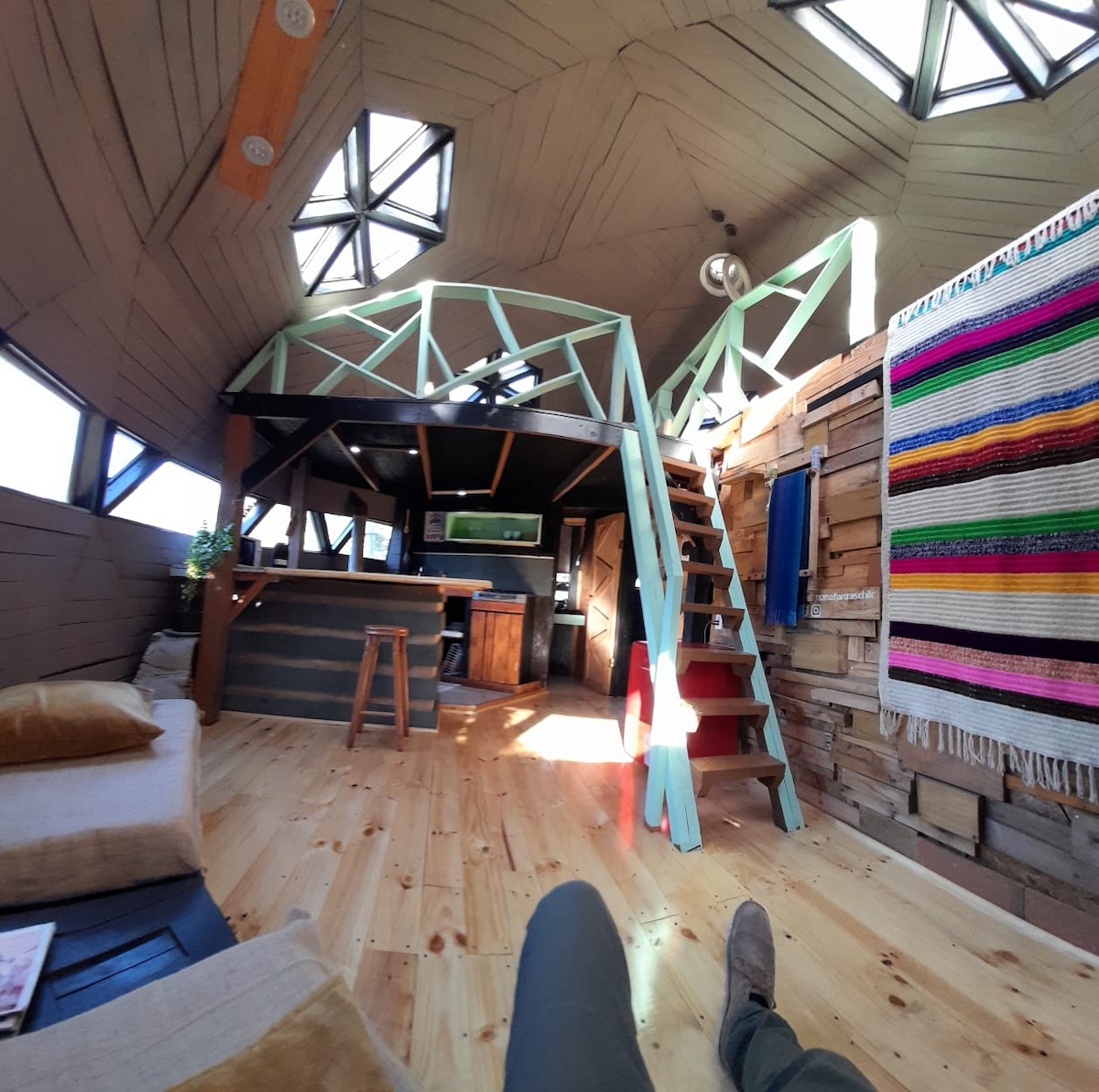 Es un domo geodésico es una estructura arquitectónica de forma de esfera. Esta cabaña es destacada por su forma, naturalidad, decoración, y por su energía que se siente al exterior del lugar. Domo dispone de 1 cama matrimonial que esta totalmente equipada para 2 personas. En su exterior tiene una terraza de madera, ideal para compartir. Te encantará esta escapada única y romántica ven y visítanos.