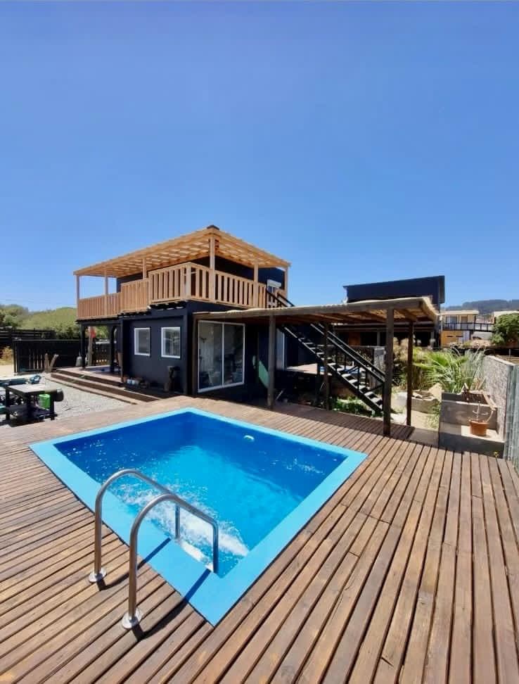 Disfruta de nuestra casa nueva y equipada con alto estándar para 8 personas. Ideal para familias, ubicada a 3 minutos de Punta de Lobos en un condominio premium con acceso directo a la playa y 5 ha de áreas verdes comunes con paseos Características: Habitación principal: cama King Habitación: cama de 2 plazas y smart TV Habitación: 2 camarotes 2 baños completos Casa totalmente equipada con toallas y sábanas WIFI Amenidades: 2 piscinas 2 saunas Sala de eventos Pumptrack Sala de juegos