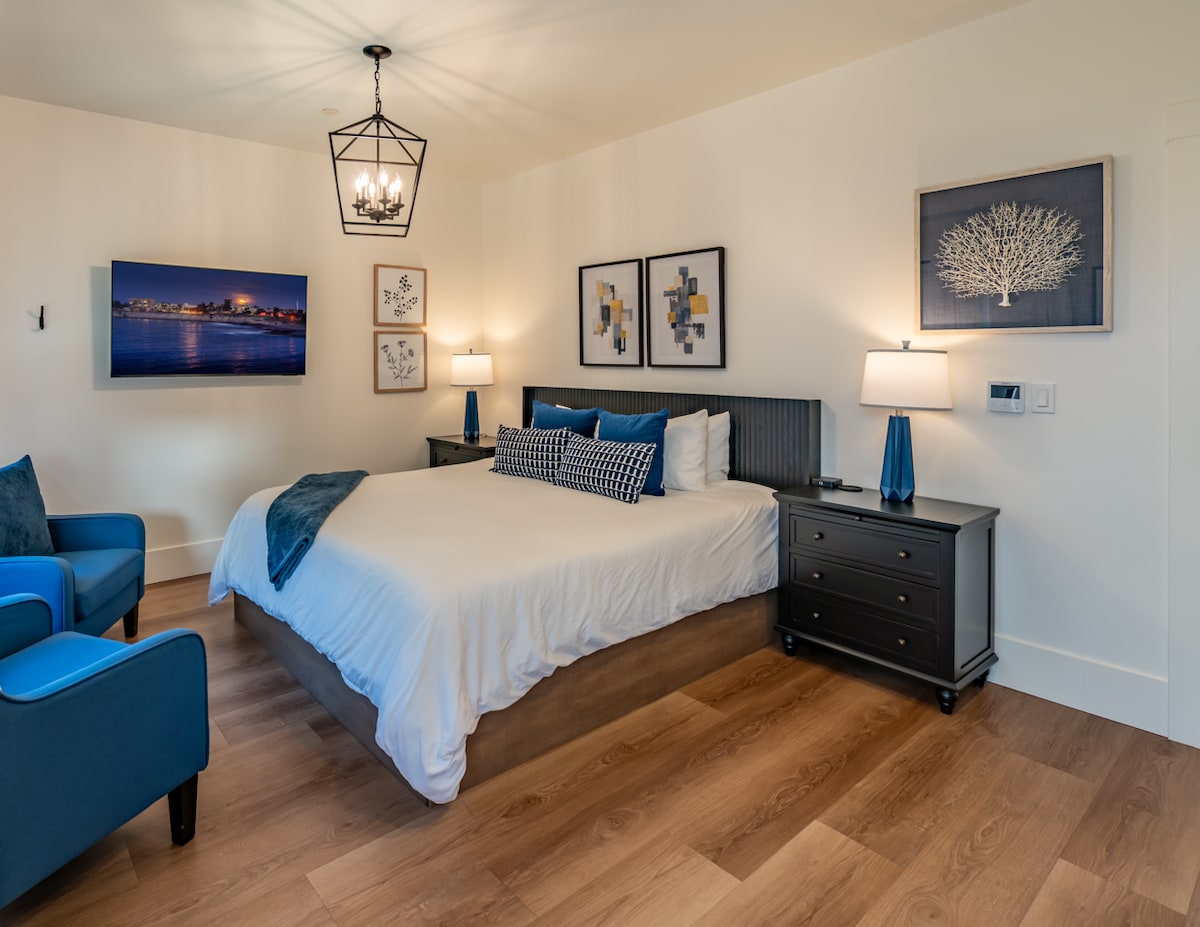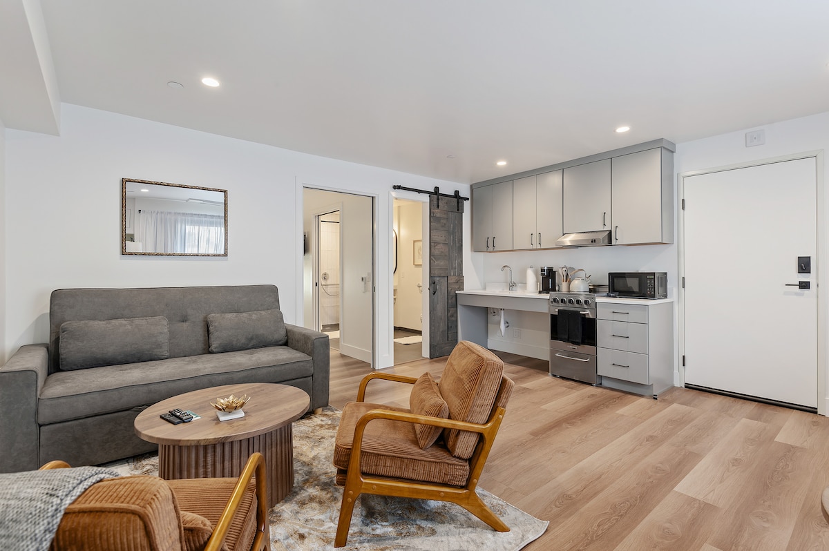 Modern beachy ambiance in a comfortable and completely renovated suite, including a new kitchen and furnishings. This suite is recently added to our other 13 listings. Located in the upper theater district, we are just three blocks away from downtown Santa Barbara, where you can find restaurants, shopping, and entertainment. Located two miles from the beach, this suite will make a great home base during your visit. We also have other suites available with different accommodations if needed!