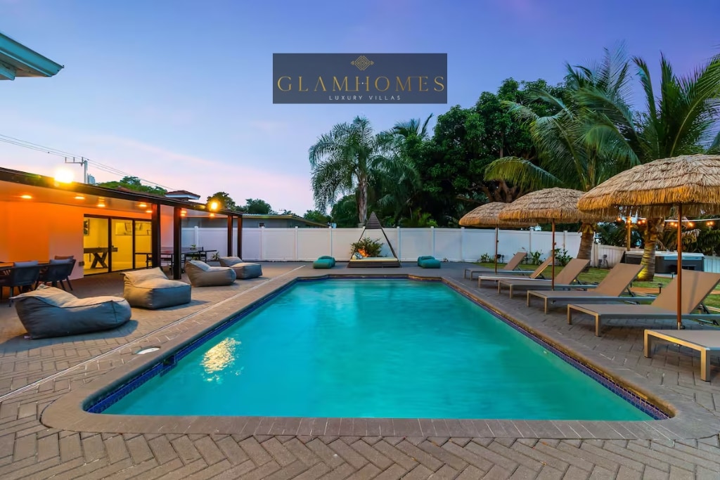 This amazing mini resort has been created with the ultimate comfort of our guests in mind. Enjoy a courtyard and pool deck designed with plenty of outdoor seating and a tiki hut. The property has synthetic grass through out, perfect for kids and family to sit and play on. Super fast Wifi. USB ports in the bedroom. Super comfortable bed. Smart Tv that you can Stream your favorite movies to. Washer/Dryer combo. Outdoor BBQ. Our home is located Minutes from downtown and Hollywood beach/ boardwalk.