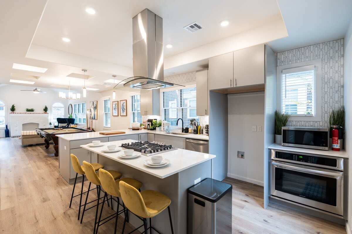 Disfruta de este alquiler vacacional en Oklahoma City con piscina privada, jacuzzi, parrilla al aire libre y asientos en el patio, perfecto para familias, grupos o viajeros de negocios. En el interior, encuentra una cocina totalmente equipada, acogedoras salas de estar y cómodas habitaciones. Convenientemente ubicado cerca de Bricktown, el centro de OKC, los mejores restaurantes y tiendas, este moderno refugio ofrece todo lo necesario para relajarse y divertirse. ¡Reserva ahora para disfrutar de un alojamiento único en OKC con los mejores servicios!