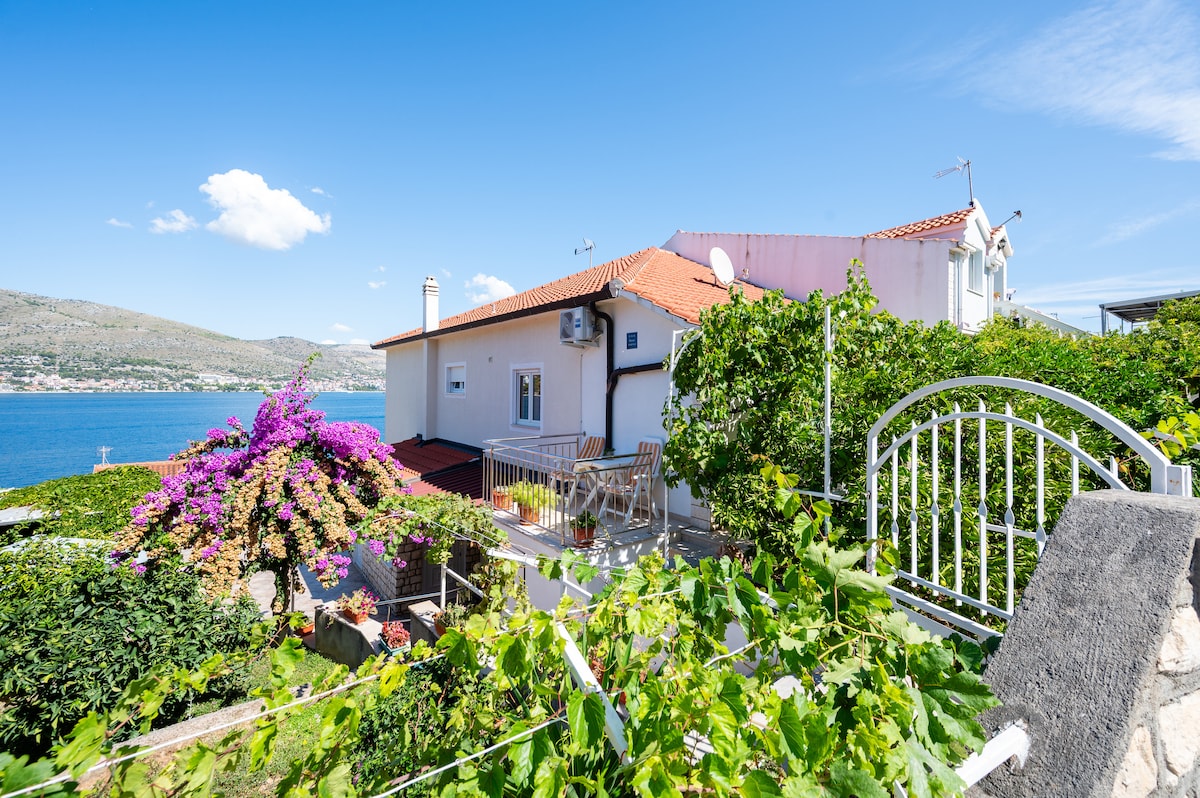 Encantadora casa moderna con la nueva piscina - SIN CLORO :-). Bonito apartamento recién reformado en la planta superior de la casa con excelentes vistas al mar y a las islas. Junto a la hermosa terraza hay una piscina de nueva construcción. El apartamento Maya 2 se encuentra a 3 kilómetros del centro histórico de Trogir y a 10 kilómetros del aeropuerto. Las ciudades de la UNESCO Split y Trogir están muy cerca de la casa y el parque nacional Krka está a solo 30 kilómetros de distancia del apartamento.