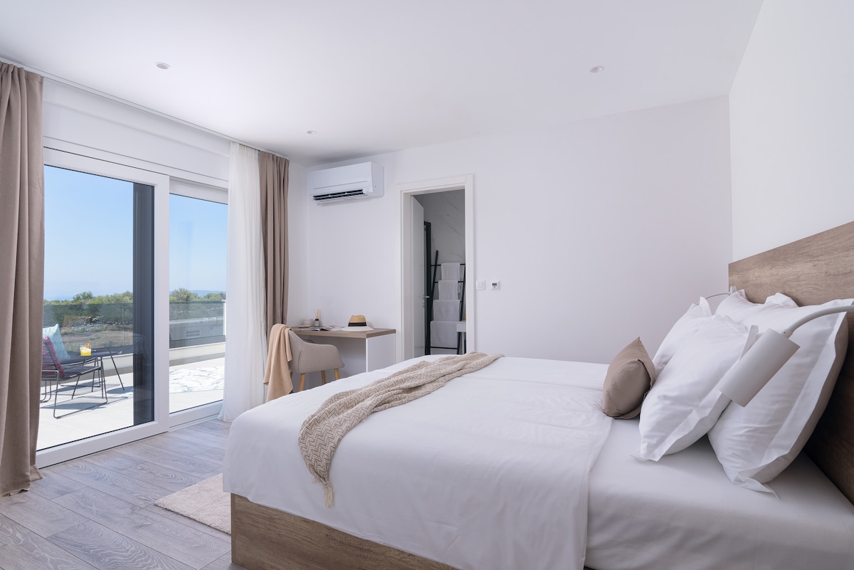 Villa Argemonia is a spectacular contemporary villa on the island of Ciovo, near the city of Trogir, just off the Dalmatian Coast of Croatia. Situated only steps from the shore, the villa features spectacular views of Tatinje Bay and the Adriatic Sea. Exquisite alfresco living and dining spaces, stylish contemporary interiors, and four deluxe bedrooms suites create an ideal vacation rental for families, friends, and destination wedding guests seeking a unique experience of the Split Riviera. Savor delectable days in the Mediterranean sun by the saltwater infinite swimming pool, relaxing on elegant sun loungers and floating in the crystalline water. Descend the shoreline slope about thirty meters to a small, private beach, where a seemingly endless expanse of turquoise sea will stretch before your feet. In the afternoon, prepare a barbeque lunch on the classic, wood-burning barbeque, and relish it at the beautiful table for ten. Walk up to the furnished pergola for serene relaxation, or mix cocktails outdoors and savor them in the lounge. Lovely glass doors open from the pool terrace to the interior living areas, inviting the sea's breeze and vistas indoors. Enjoy a sunset soak in the wonderful hot tub attached to the living area. Cook delicious feasts in the fully equipped kitchen, and gather around the lovely dining table. At night, kindle a fire in the living room and sip delicious digestifs. And in the morning, refresh yourself in the sauna and exercise room, before plunging into the pool or sea. Outstanding AV equipment and smart home technology ensure total comfort and convenience during your stay. The villa features four gorgeous bedrooms, all with with king beds, ensuite bathrooms, and Adriatic views. Two of the suites open to private balconies. There is also a double sofa bed in the living room. Beautifully furnished, the suites offer tranquil privacy for downtime and rest accompanied by the music of the sea. The villa balances wonderful, seafront serenity with outstanding proximity to the ancient city of Trogir and the splendors of Okrug Gornji, the westernmost region of Ciovo. Walk or drive just three kilometers to enjoy Trogir's famous architecture—wonderfully preserved from the Romanesque, Rennaissance, and Baroque eras—including St. Lawrence Cathedral and the Chapel of Saint John. Copyright © Luxury Retreats. All rights reserved. BEDROOM & BATHROOM • Bedroom 1: King size bed, Ensuite bathroom with stand-alone shower, Television, Safe, View of sea • Bedroom 2: King size bed, Ensuite bathroom with stand-alone shower, Television, Safe, Private balcony, View of sea • Bedroom 3 - Primary: King size bed, Ensuite bathroom with dual shower, Television, Safe, View of sea • Bedroom 4: King size bed, Ensuite bathroom with stand-alone shower, Television, Safe, Private balcony, View of sea Additional Bedding • Double sofa bed in living room FEATURES & AMENITIES • Wine fridge • View of Adriatic sea • More under “What this place offers” below Extra cost (advance notice may be required): • Activities and excursions • More under “Add-on services” below