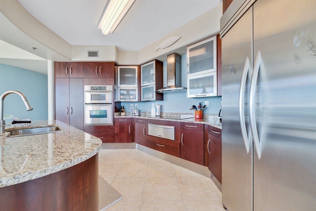 Shabby chic y moderno, costero y acogedor. Lujoso condominio en el piso sexto en la Torre 3. ¡FRENTE A LA PLAYA, VISTA INCREÍBLE, BALCÓN EXTRAGRANDE! *Condominio de 2 dormitorios/2 baños ~capacidad para 8 personas * Camas de espuma viscoelástica en el dormitorio principal y en el segundo. Sofá cama tamaño queen. * Playa privada. *Cocina de chef totalmente abastecida. *Televisores inteligentes * Silla alta, mochila/juego, juegos y más. *Acceso al armario/equipo de playa