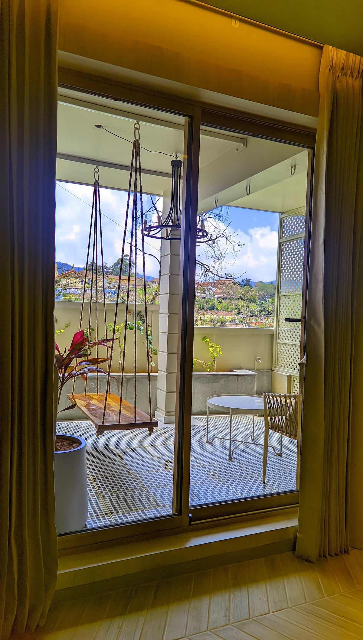 Relájate en nuestra tranquila habitación con impresionantes vistas a la colina y al entorno desde tu balcón privado, donde podrás conectar con la naturaleza. La habitación está equipada con comodidades modernas, como wifi y TV, para que puedas entretenerte y estar conectado. Nuestro equipo de limpieza dedicado se asegura de que la habitación esté impecable y acogedora, proporcionando un espacio cómodo para la reflexión y la relajación. Disfruta del aire fresco y de las vistas panorámicas desde tu acogedor balcón.