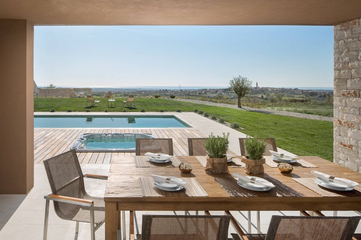 Welcome to our villa with a private heated swimming pool in the Istrian countryside, ideal for families or groups of friends of up to 6 people. Located in a small village surrounded by olive groves and vineyards, the house is only 5–10 minutes from several beaches. Strategically located to visit seaside towns such as Novigrad, Umag and Poreč, as well as charming inland villages like Buje, Brtonigla and Grožnjan. Istralandia aquapark is just minutes away. Book now for an unforgettable vacation!