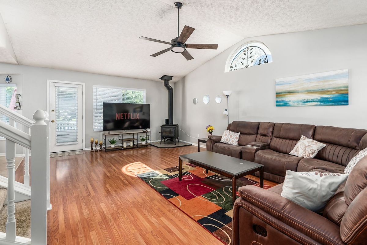 ¡Siéntete como en casa en el pintoresco centro de Westerville! Este espacio de tipo hotelero cuenta con un patio privado (con bañera de hidromasaje terapéutica) que conduce a la entrada del sereno patio trasero. Pasea por los senderos para caminar/en bicicleta cercanos o por el hermoso campus de Otterbein mientras te diriges a tiendas únicas, cafeterías, heladerías o restaurantes donde podrás disfrutar de una bebida para adultos en la histórica ciudad donde comenzó la prohibición. La televisión por streaming y un baño tipo spa se suman al R&R que necesitarás para completar tu día.