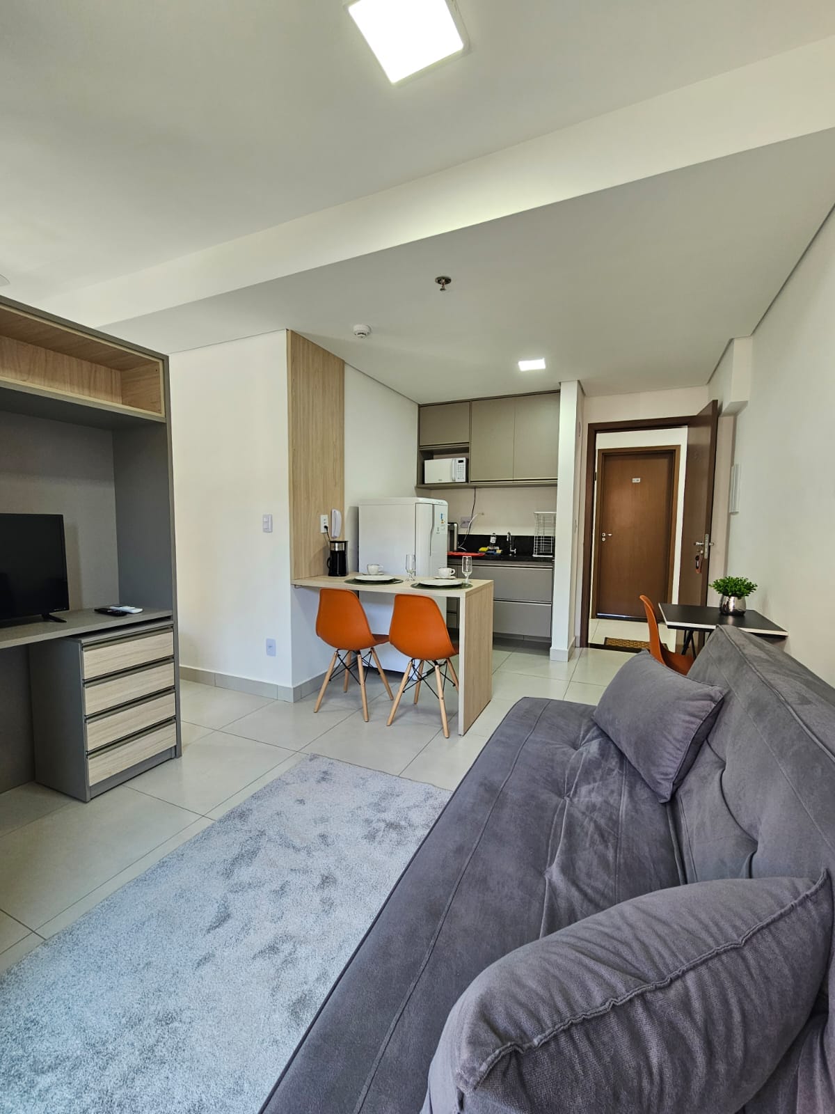 Apartamento Studio nuevo y moderno ubicado en una zona privilegiada de Ribeirão Preto, cuenta con Wi-Fi, aire acondicionado, cocina completa, smart Tv 40', gimnasio BlueFit en el edificio, Air fryer, plaza de garaje y área de ocio completa, piscina, sauna, sala de juegos, espacio gourmet, espacio de coworking para trabajar, home market 24h y la mejor ubicación de la ciudad, en la Avenida Presidente Vargas a 3 minutos del centro comercial Ribeirão y cerca de los mejores parques, bares y restaurantes de Ribeirão.