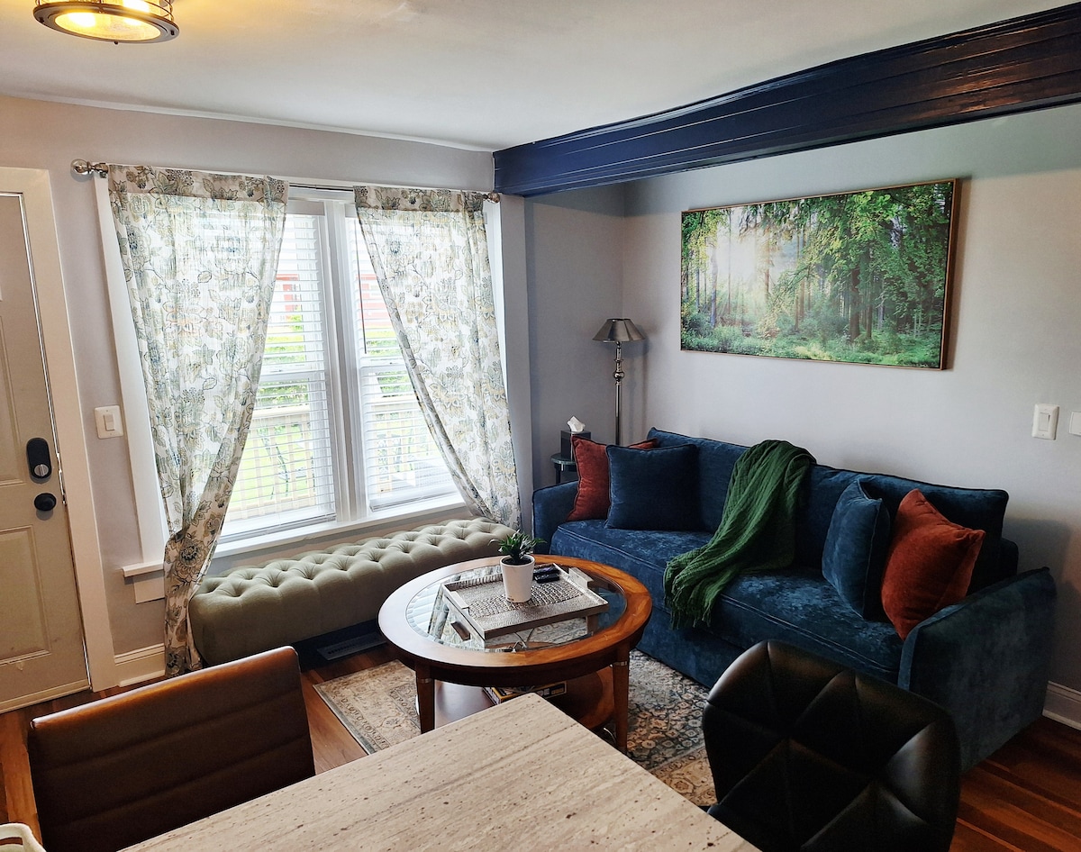 Cuando llega, se produce un cambio sutil. La luz inunda el espacio, el ritmo se ralentiza y el hogar se siente acogedor. Las mañanas comienzan con un café en la terraza mientras su perro explora el patio cercado. Pase el día descansando o explorando los senderos cercanos en Starved Rock. Al caer la noche, reúnanse alrededor de la fogata o relájense bajo la suave iluminación de la terraza. Hozho Cottage es un lugar tranquilo y apto para mascotas donde llegar, relajarse y sentirse como en casa.
