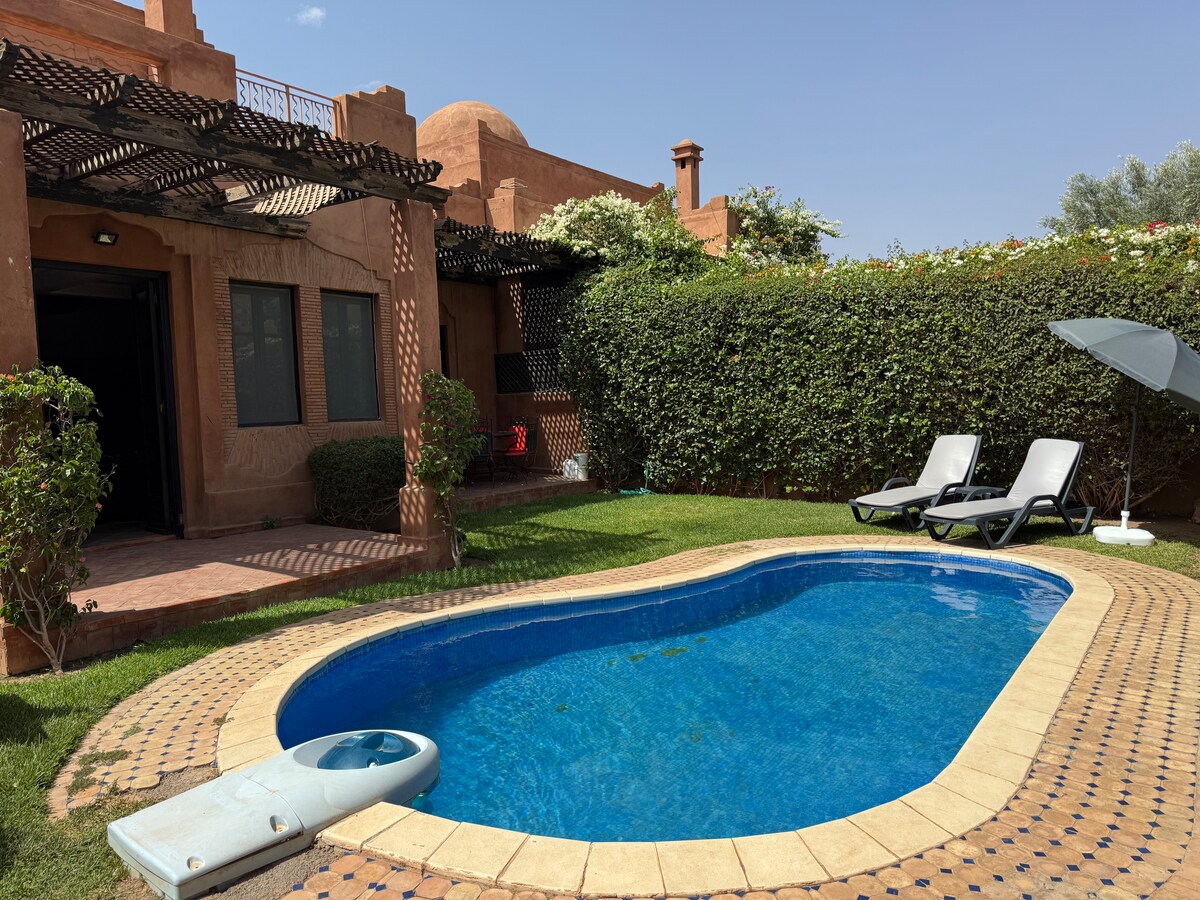 Bienvenido a su oasis en la Palmeraie... Un joyero marroquí bañado en luz, rodeado de palmeras y olivos. Aquí, dos habitaciones acogedoras, un salón con aires de riad y dos terrazas donde disfrutar de sus desayunos frente a la piscina turquesa. Todo está pensado para las familias que buscan desconectar, belleza y serenidad. Un lugar único, fuera del tiempo, donde Marrakech se vive de otra manera. Excelente conexión a Internet Wi-Fi por fibra óptica, velocidad de 100 Mb.
