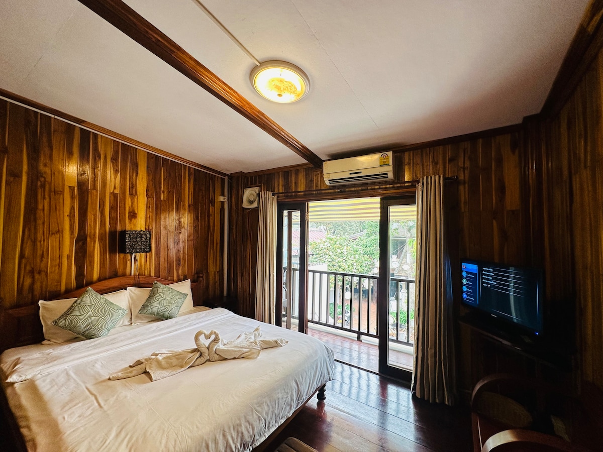 Ubicación, ubicación y ubicación, solo sal por la puerta y todo lo que quieras explorar estará justo delante de tus ojos. Nuestra casa de huéspedes está en el centro de Luang Prabang, junto a la calle del mercado nocturno y el Museo Nacional. Nuestra habitación tiene wifi, aire acondicionado, ventilador y está en una zona tranquila. Construimos la casa de huéspedes al estilo de Laos con madera en la pared y el suelo. También limpiamos la habitación todos los días para ti. ¡Te damos la bienvenida a Luang Prabang y nos encantaría que te gustara Luang Prabang como a nosotros!