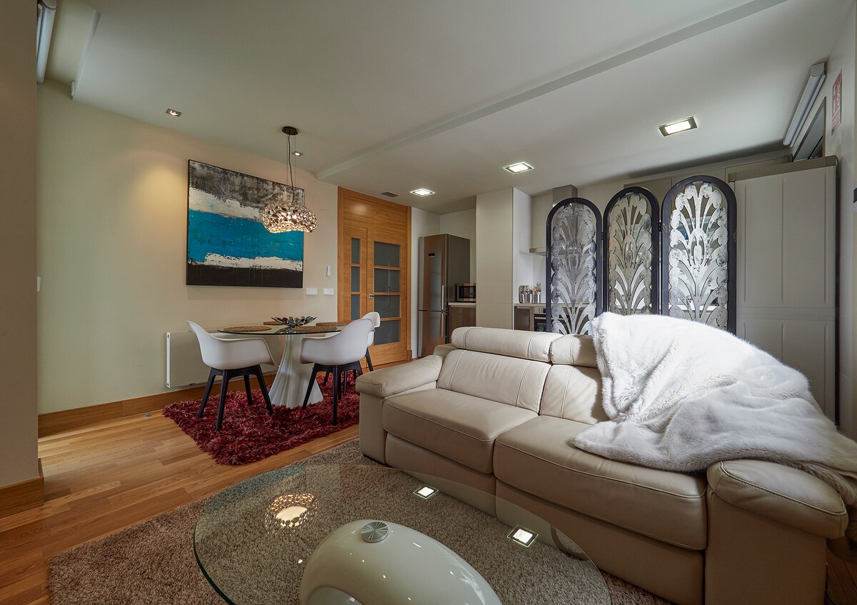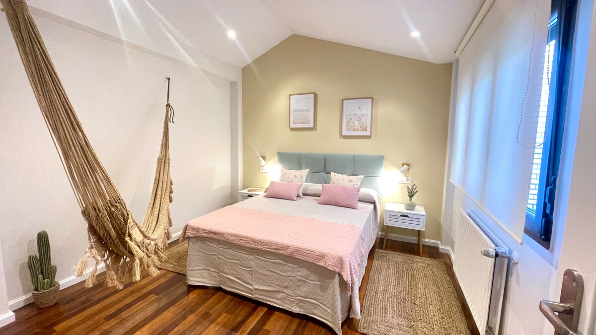 Coqueto apartamento tipo loft de 30m2, diáfano y muy luminoso que combina la estética industrial con la calidez de sus altos techos de madera. Cama King size, estufa de leña(leña incluida) y bañera de hidromasaje. Cocina/comedor completamente equipada en menaje y electrodomésticos. Baño con ducha y terraza exterior. Smart TV45", WIFI y Netflix gratis. Calefacción de suelo radiante por aerotermia.