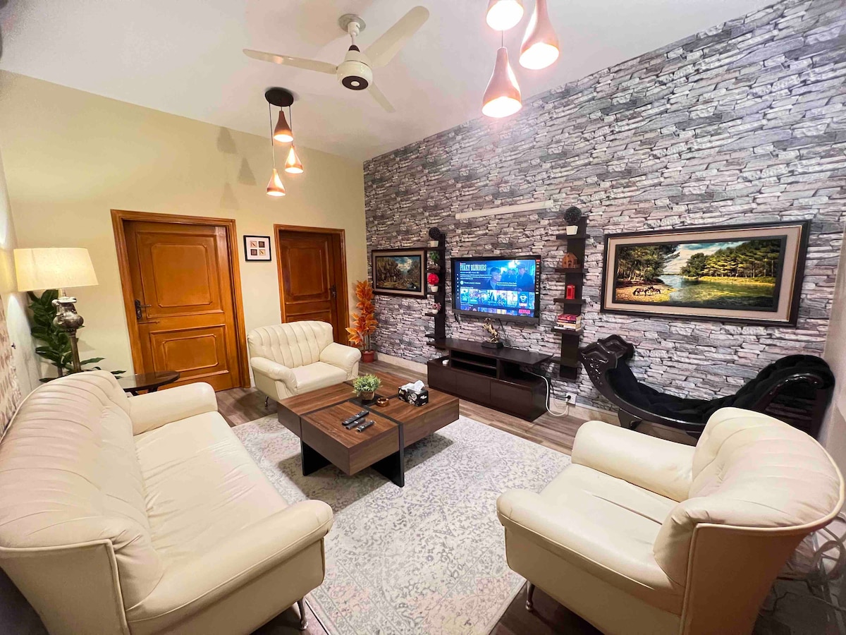 Enjoy a comfortable stay in our fully furnished Kanal house located in Multi Gardens B-17, Islamabad. The location offers quick access to the city—just 15–20 minutes from major attractions including Centaurus Mall, Diplomatic Enclave, F-10, and Blue Area. Traveling is easy too: Islamabad International Airport (ISB) is only 35 minutes away via the M2 Motorway. The neighborhood is peaceful and family-friendly, with nearby amenities such as a zoo, kids’ play area, parks, and Markets.