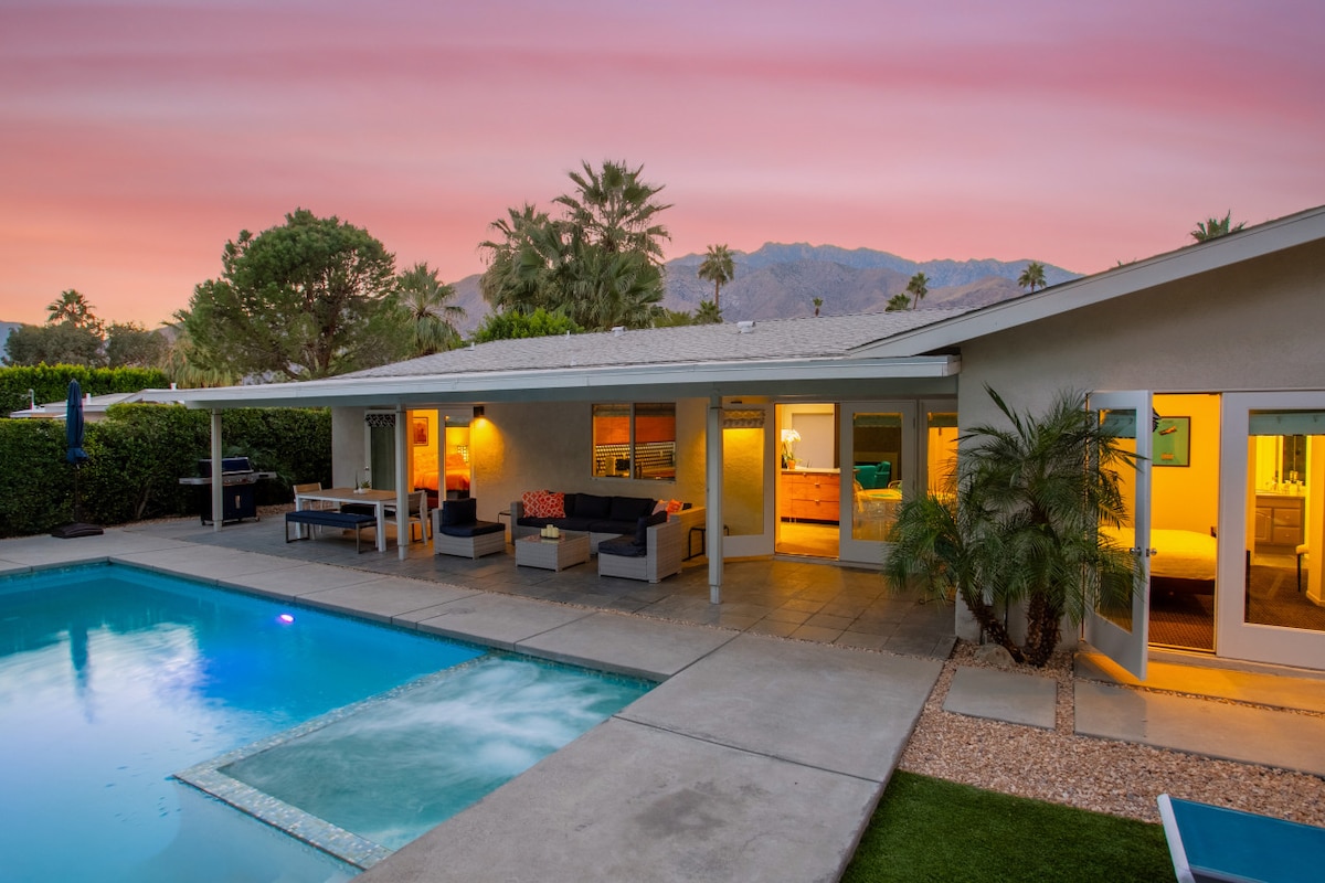 Lujoso alojamiento de mediados de siglo con 4 dormitorios, 3 baños y dos palmeras gemelas