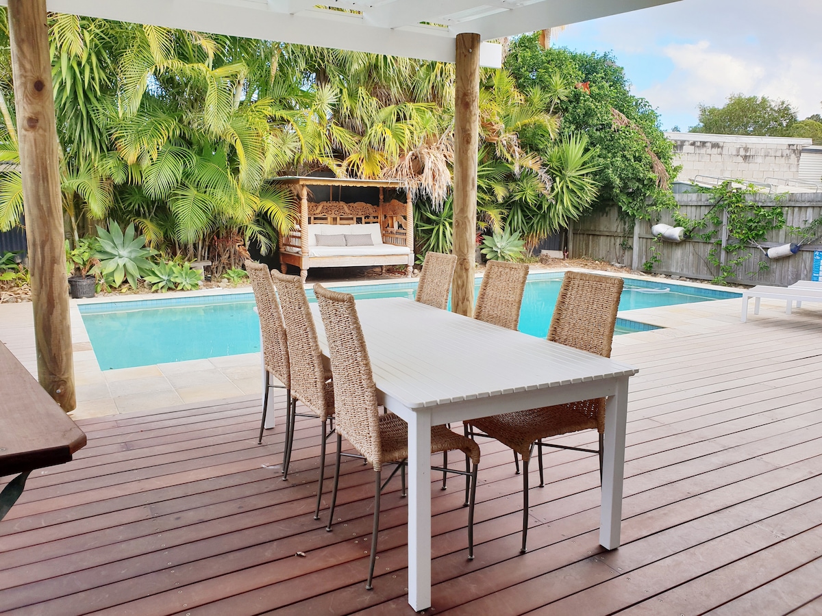 Amplio apartamento de tres dormitorios con piscina diseñado meticulosamente para crear tu hogar lejos de casa. A pocos pasos de la playa, esta casa cuenta con una gran terraza delantera con vistas al mar y un patio trasero con asientos incorporados y una pérgola sombreada para relajarse alrededor de la piscina. Todos los lujos que uno necesitaría... cafetera Nespresso, wifi, TV inteligente, equipo de música Bang and Olsen con bluetooth y una ducha caliente al aire libre. Casa perfecta para dos familias o una familia numerosa.