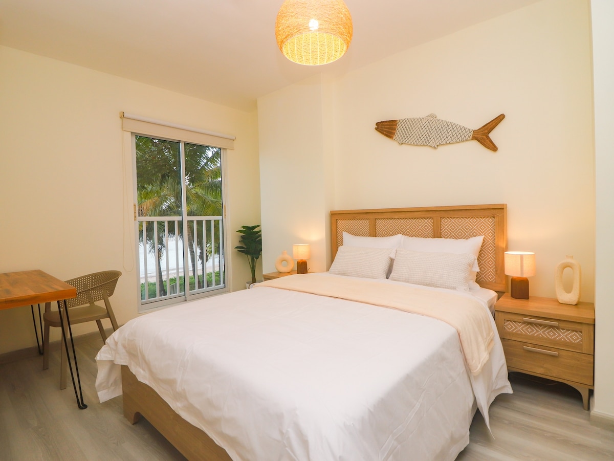 Acogedor apartamento en primera línea de playa totalmente amueblado y equipado a solo 30 kilómetros de ciudad de Panamá. El apartamento tiene la mejor ubicación del residencial ya que está a pasos del club de playa (piscina, toboganes, cancha de voleibol de arena, la playa, etc.). Al hospedarse con nosotros le incluimos de cortesía el acceso al club donde podrá disfrutar de todas sus amenidades. El club abre de martes a domingo en horario de 8am a 6pm, los toboganes cierran a las 5 p.m.