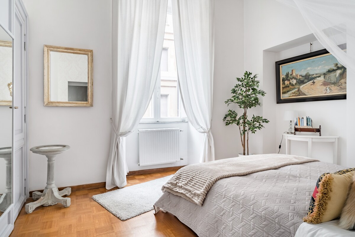 Tu alojamiento en el corazón de Roma, a pocos pasos de los sitios históricos y arqueológicos más importantes que la ciudad puede ofrecer. Un alojamiento cómodo y reservado, para parejas que buscan tranquilidad, pero también para familias de hasta cuatro personas o con bebés, para quienes ofrezco todos los servicios necesarios además de juegos y libros. El apartamento tiene todo lo que necesitas y más. Con techos artesonados de madera y suelo de mármol, se encuentra dentro de un edificio histórico del siglo XIX.