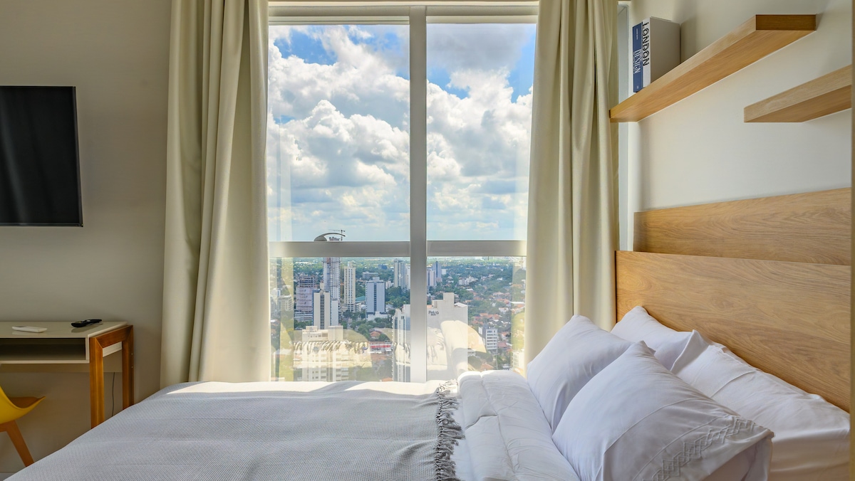 Departamento ubicado en un piso alto, con balcón y vista despejada, totalmente equipado para una estadía cómoda: - Cama king con colchón firme de alta densidad - Espacio de trabajo con escritorio y conexión WiFi - Smart TV de 55'' - Rooftop con piscina y gimnasio - Quincho - Lavandería - Seguridad las 24 horas Ubicación excepcional: - Situado en el Eje Corporativo, a solo 5 minutos del Shopping del Sol y Paseo La Galería - A 15 minutos del Aeropuerto Internacional Silvio Pettirossi
