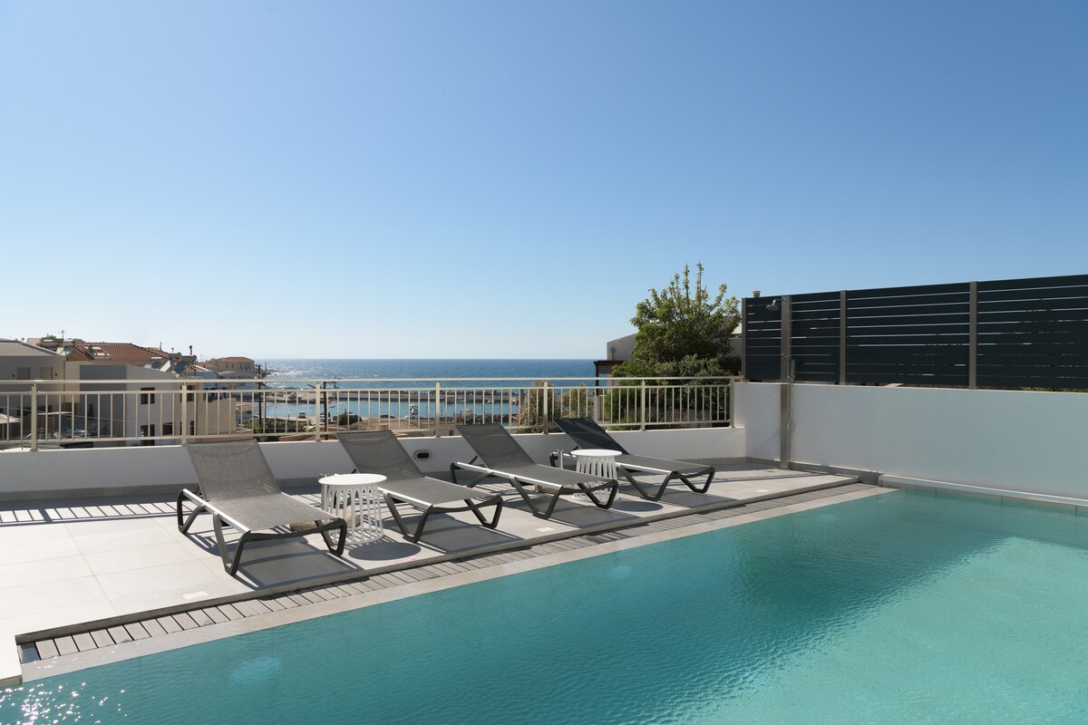 Bienvenido a Fig Villa: un paraíso contemporáneo junto al mar Ubicada en un sereno paisaje costero, Fig Villa es una elegante escapada que combina el diseño moderno con el carácter cretense atemporal. Diseñada para la comodidad, la privacidad y la vida sin esfuerzo, esta villa de 135 m² de nueva construcción es el refugio perfecto para familias o amigos que buscan relajarse a solo unos pasos de la playa.