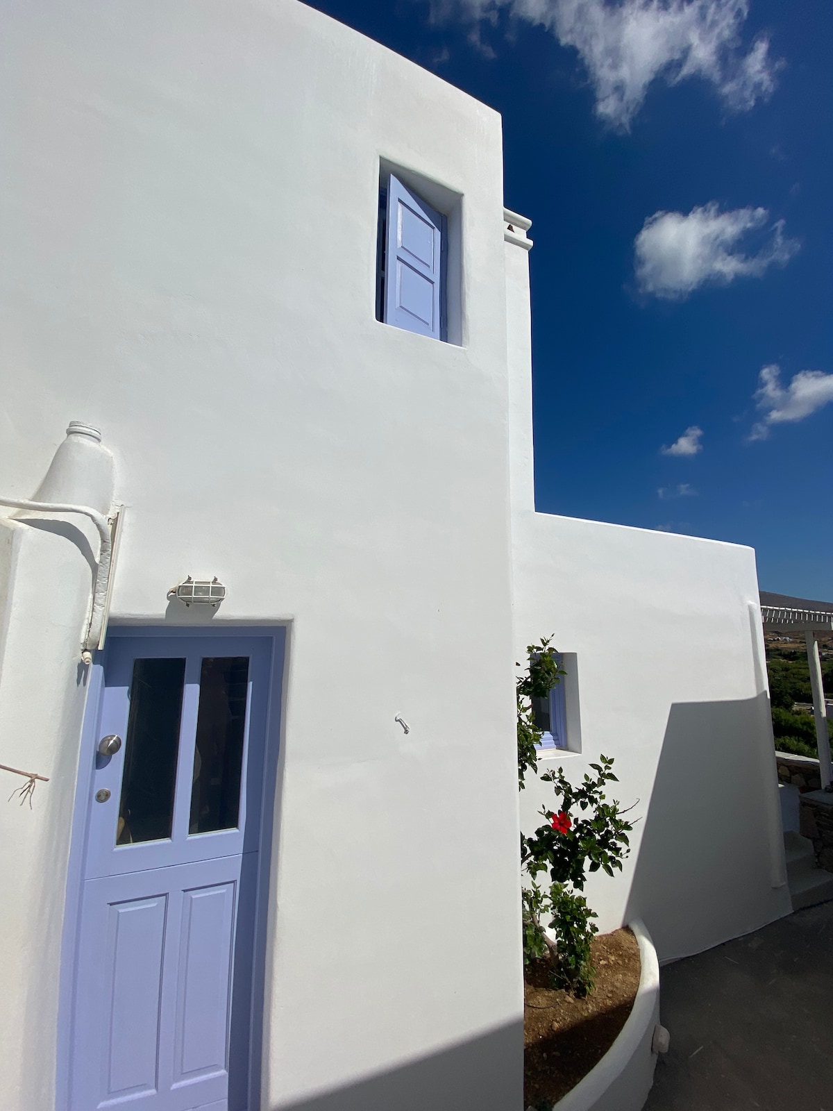 Construido en la ladera de la colina "En Lefko" ofrece paz y tranquilidad junto con una vista única de la magnífica Chora. La casa se encuentra en la ciudad principal de la isla, Livadi, y solo se tarda unos minutos a pie , en llegar al centro, donde puedes encontrar todo lo que probablemente necesites. ¡Pequeño pero totalmente equipado te ofrecerá algunos días tranquilos y relajantes!