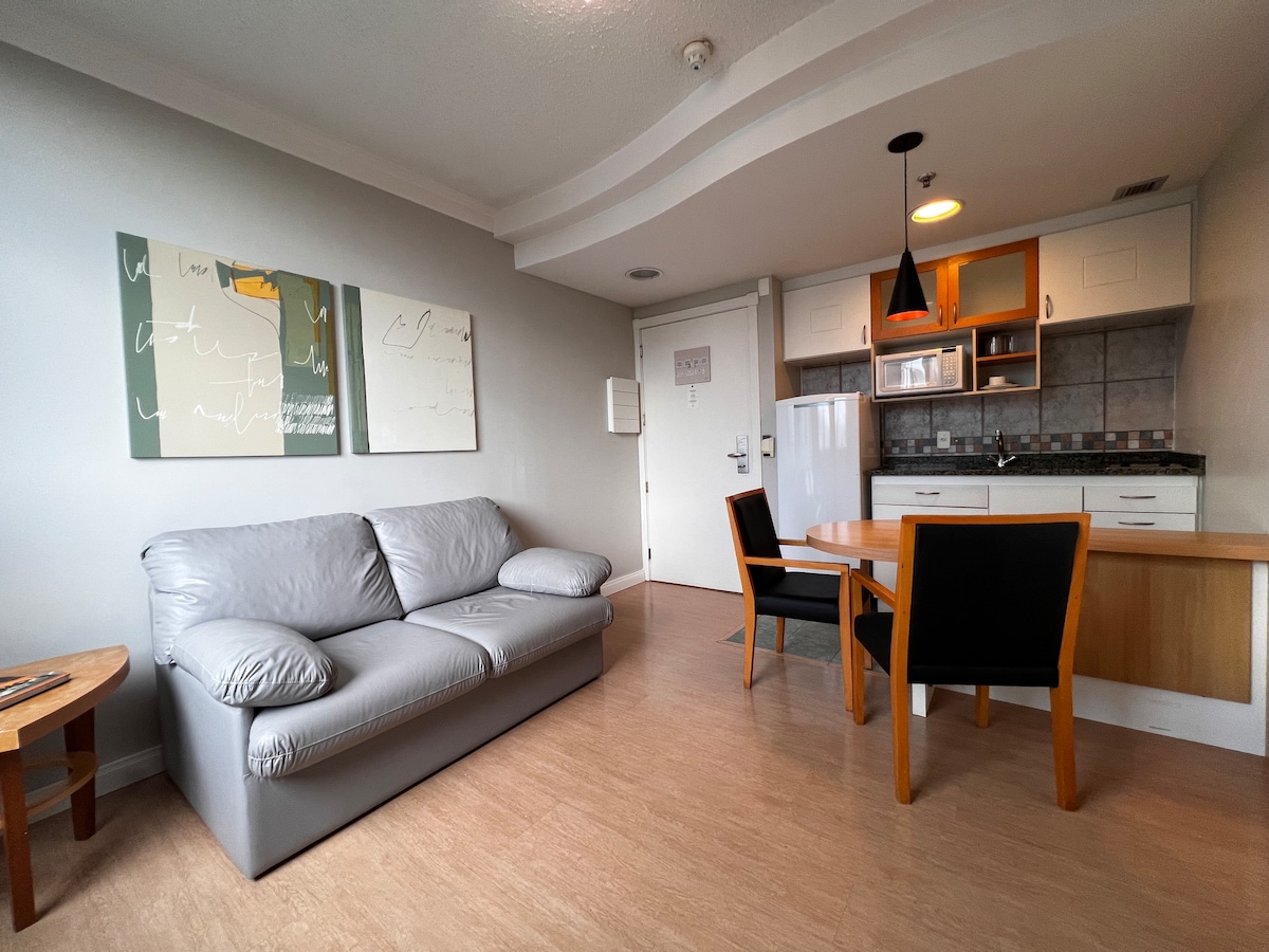 ¡Te damos la bienvenida al corazón de Porto Alegre! Nuestro estudio ofrece, además de comodidad y practicidad, la ventaja de una ubicación céntrica, con transporte público a la puerta, supermercados y farmacias a un minuto. Disfruta del aire libre y la naturaleza urbana en Redenção o de la vida nocturna en Cidade Baixa. La ubicación privilegiada también ofrece fácil acceso a la recientemente renovada Orla do Guaíba.