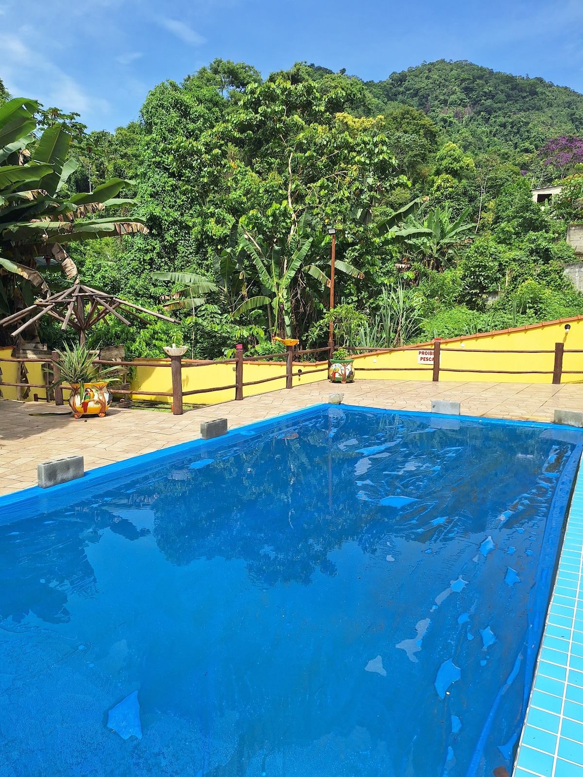 Duerme con el suave ruido del río. Despertarse con el canto de los pájaros. Descansa en una red entre árboles. Relájate en una piscina con agua fría que proviene de una cascada. O simplemente observa la exuberante naturaleza que nos rodea. Y todo esto con la comodidad de nuestro chalet completo, con cocina privada, baño, aire acondicionado, TV por cable, balcón con red, wifi y estacionamiento. Estamos cerca de hermosas cascadas y a pocos minutos de playas paradisíacas. Mercado a pocos metros.
