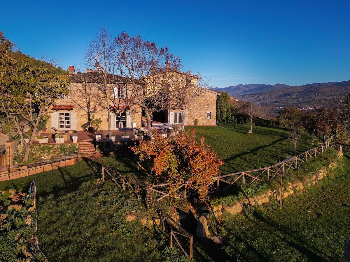 Ubicada en una ladera sobre la zona de Valdarno, entre las ciudades de Florencia, Arezzo y Siena, la villa Lazy Oak está rodeada de acres de olivares. La casa principal de dos niveles se ha equipado con dormitorios, baños y una cocina nueva, al tiempo que conserva sus antiguos suelos de terracota y techos con vigas. Una logia comedor para comidas al aire libre goza de una vista impresionante del campo. La piscina infinita se encuentra a solo unos pasos de la casa en una terraza verde amueblada con tumbonas.
