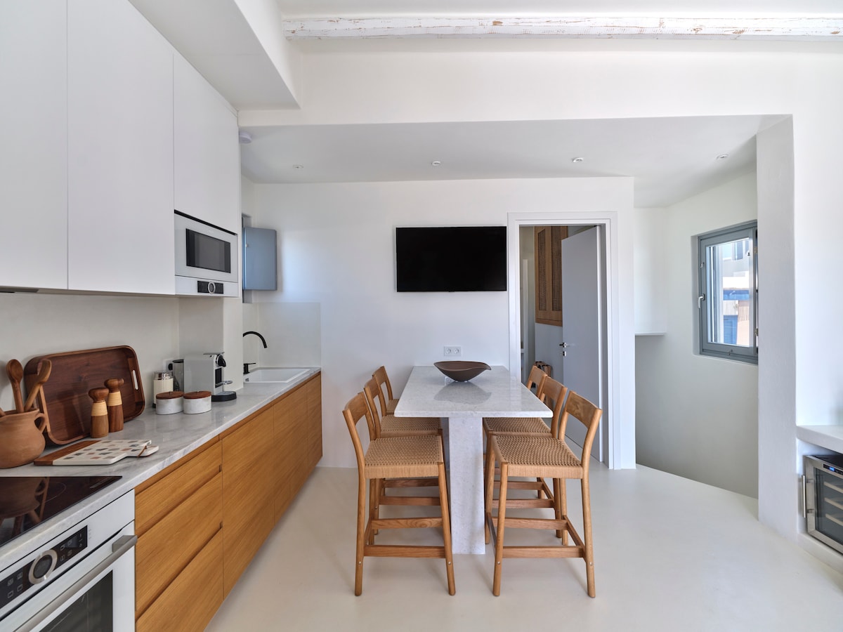 Una propiedad recién reformada frente al mar de 125 metros cuadrados con increíbles vistas al golfo de Naousa. La casa ocupa toda la planta baja, con sus terrazas y balcones que ofrecen un montón de oportunidades para vivir al aire libre. Totalmente equipado con todas las comodidades para asegurar una estancia cómoda. Naousa está a 5 minutos a pie de la propiedad. Whitestay apuesta por la sostenibilidad y ahora ofrece una pequeña flota de Citroen AMIs totalmente eléctricos y nuevos exclusivamente para nuestros huéspedes a precios muy competitivos.