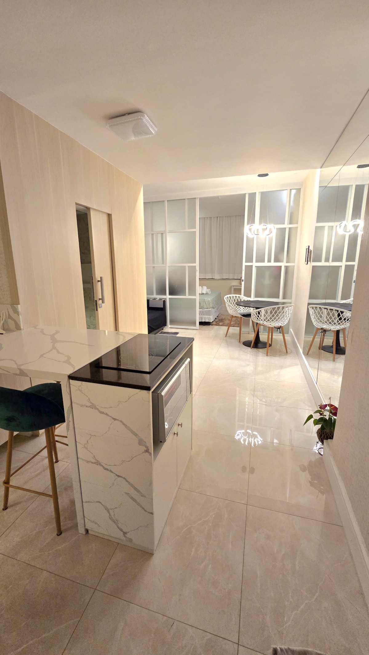Romantic loft between Santa Teresa and Laranjeiras with panoramic views of Guanabara Bay, Sugarloaf Mountain, and Christ the Redeemer. Designed by us, architects and designers, it combines handmade furniture, art, and reclaimed wood. Perfect for couples, photo shoots, or special celebrations, offering charm, privacy, and easy access to Rio’s main attractions.